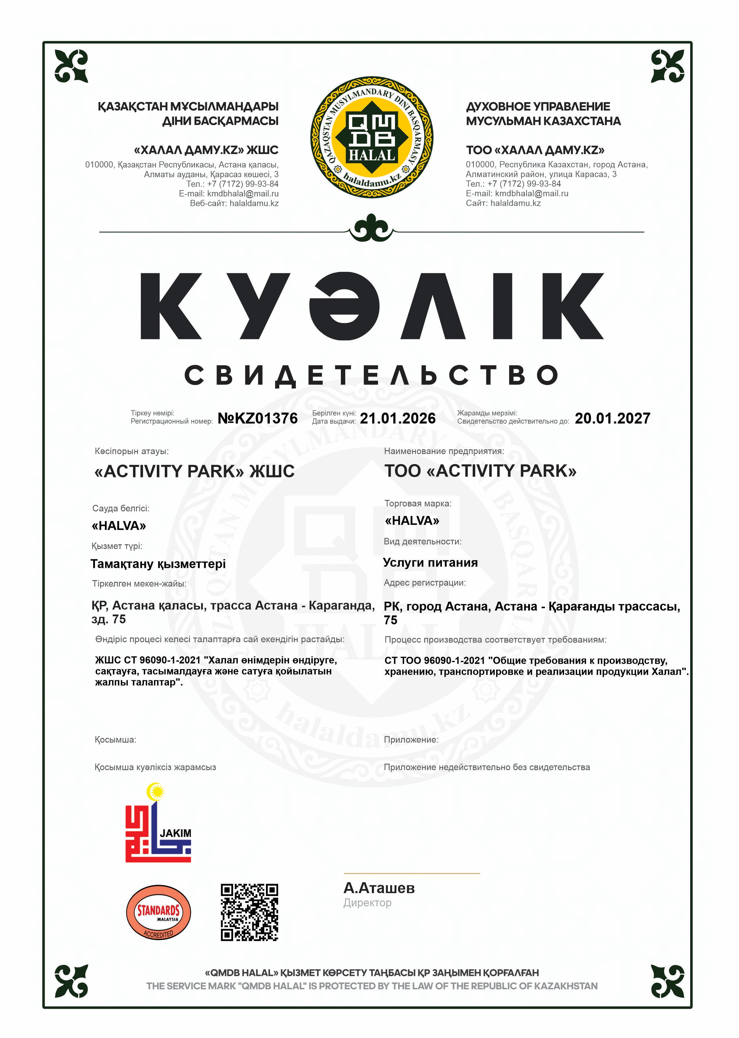 20.01.2027 ге дейін сертификатталған