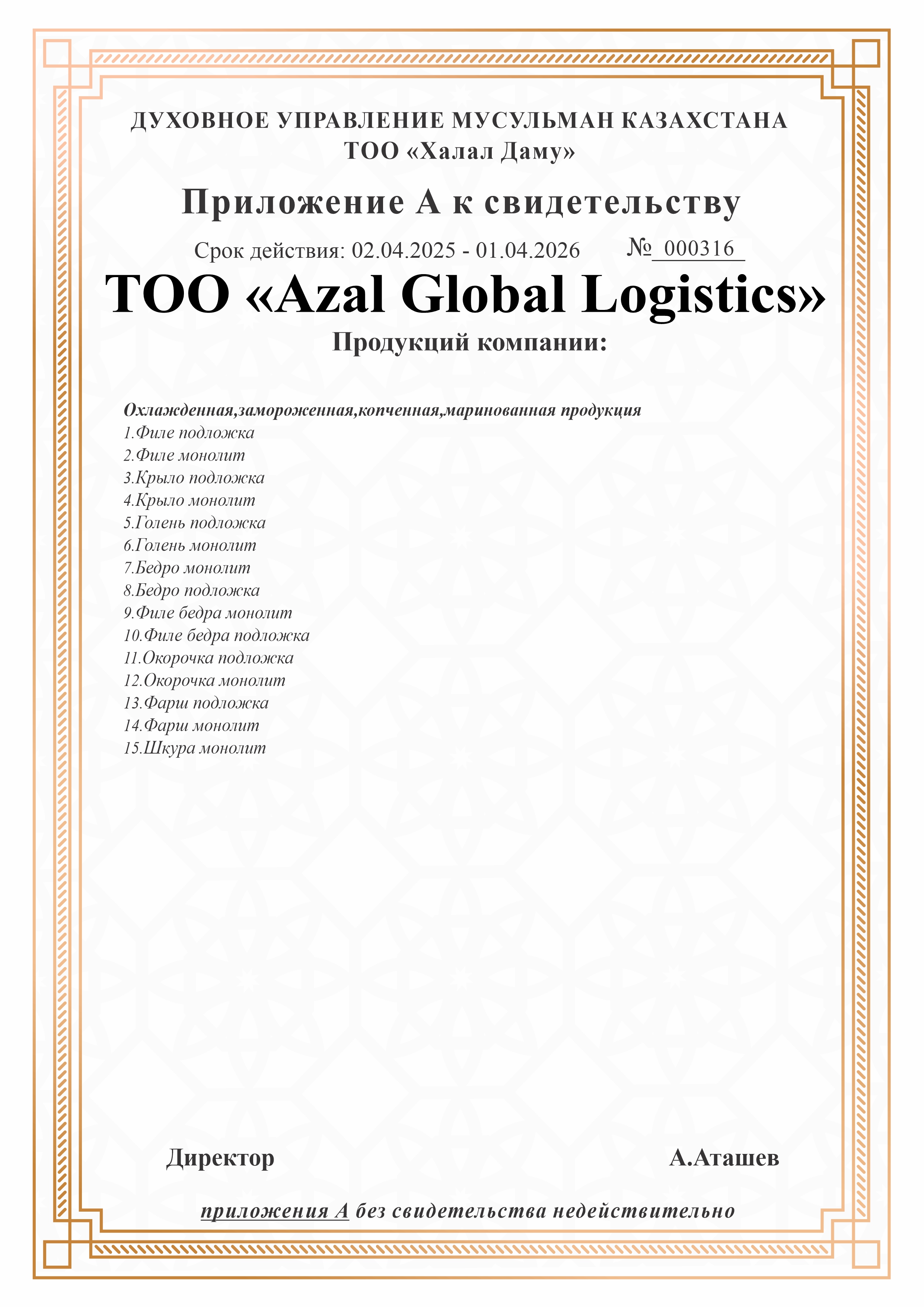 01.04.2026 ге дейін сертификатталған