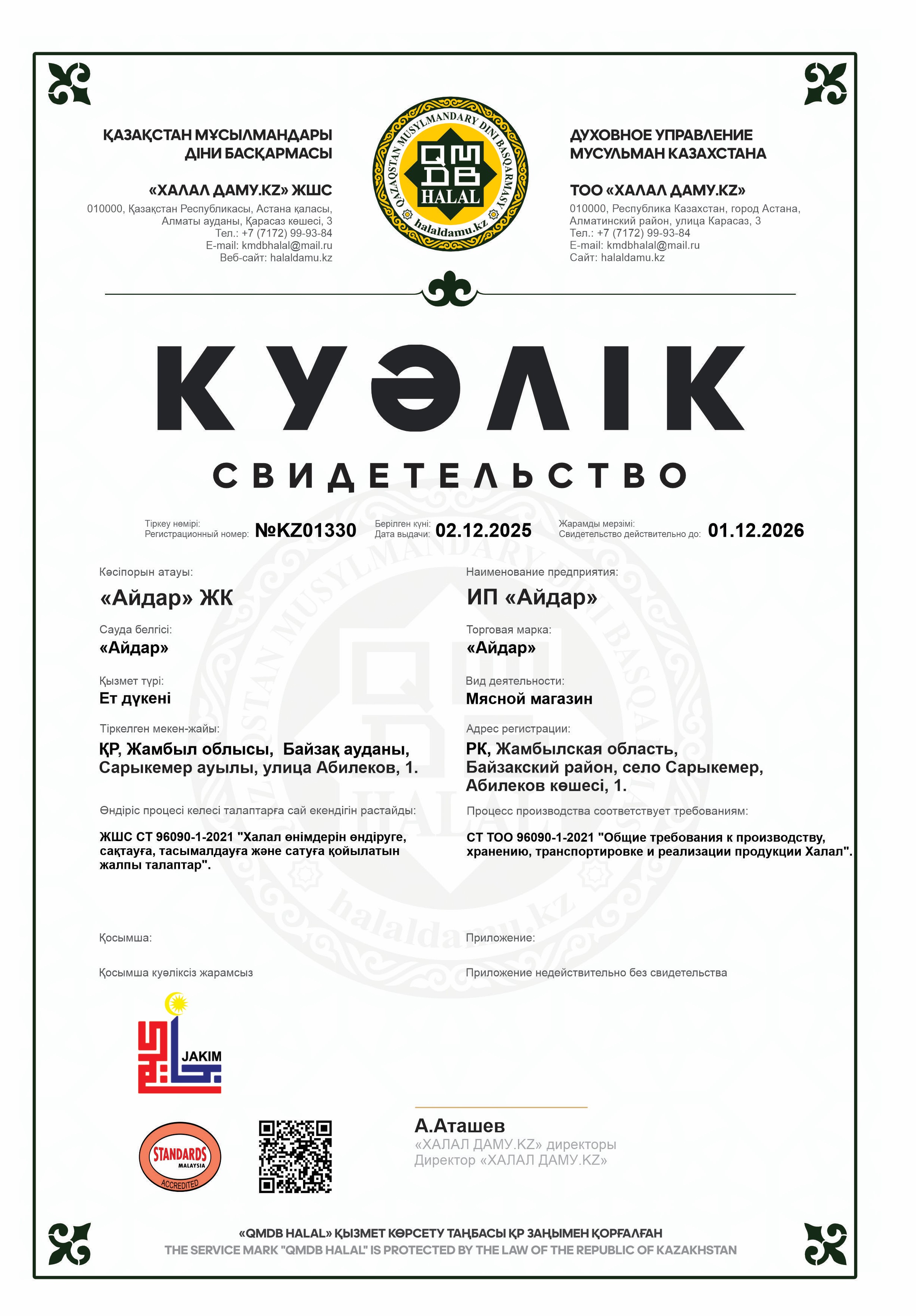 01.12.2026 ге дейін сертификатталған
