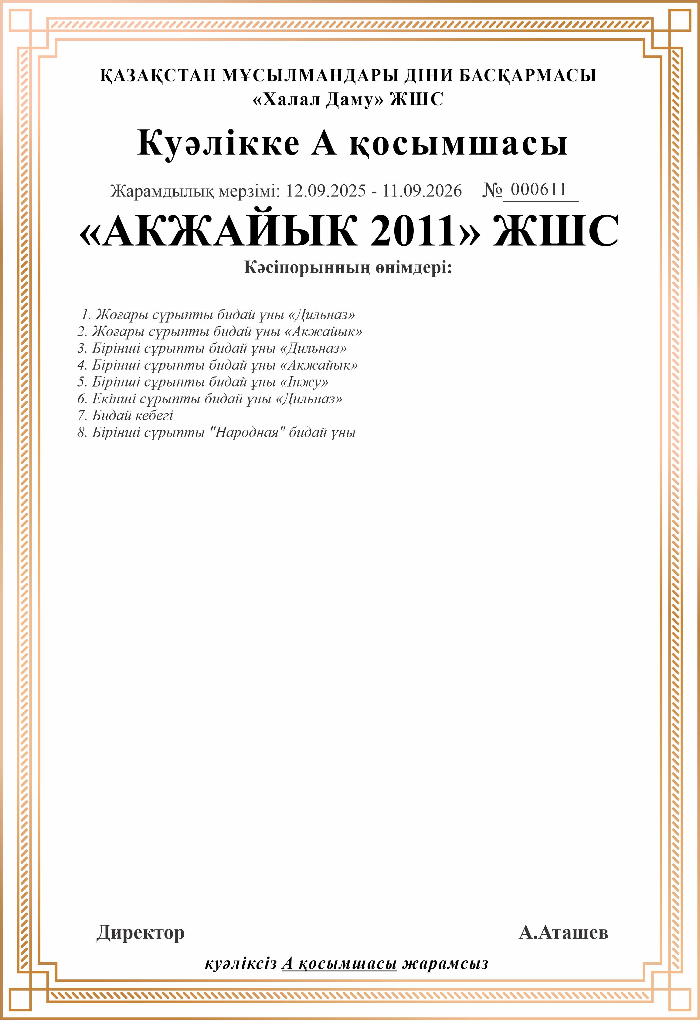 11.09.2026 ге дейін сертификатталған