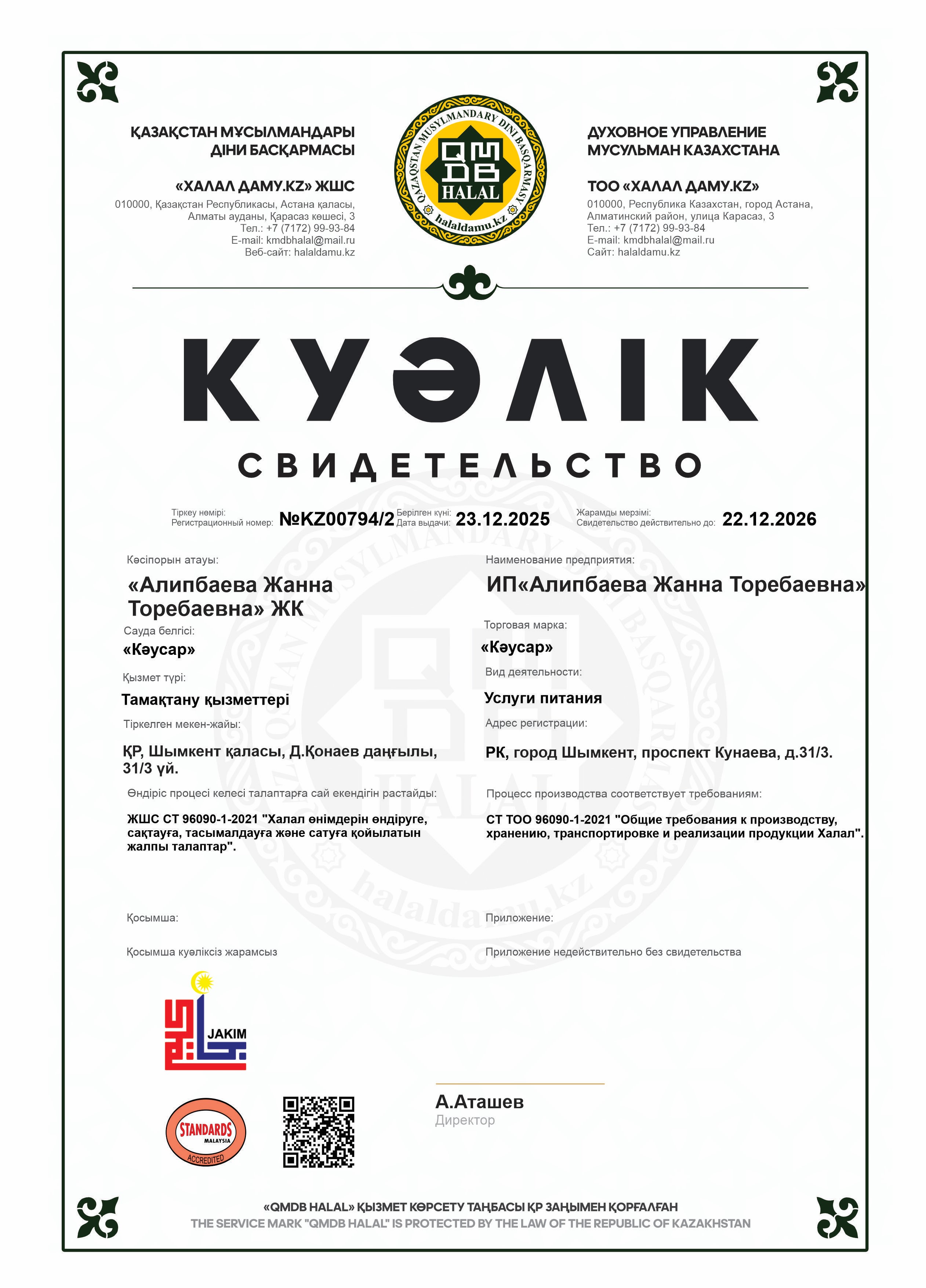 22.12.2026 ге дейін сертификатталған