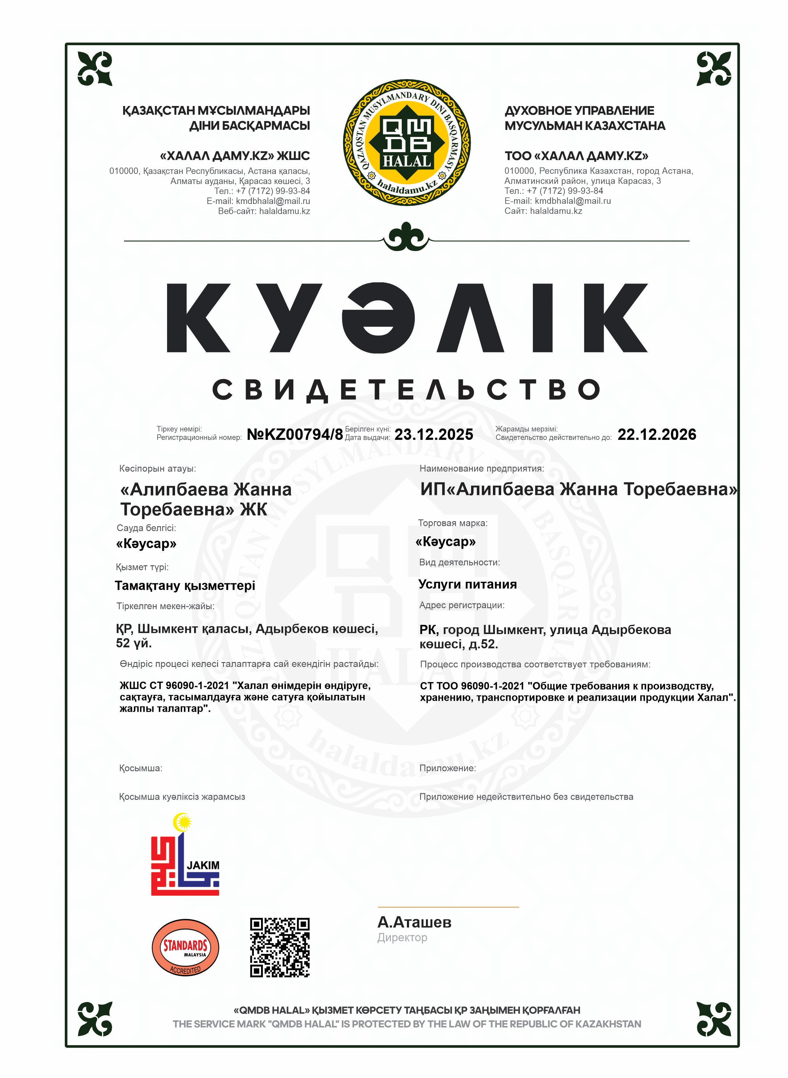 22.12.2026 ге дейін сертификатталған