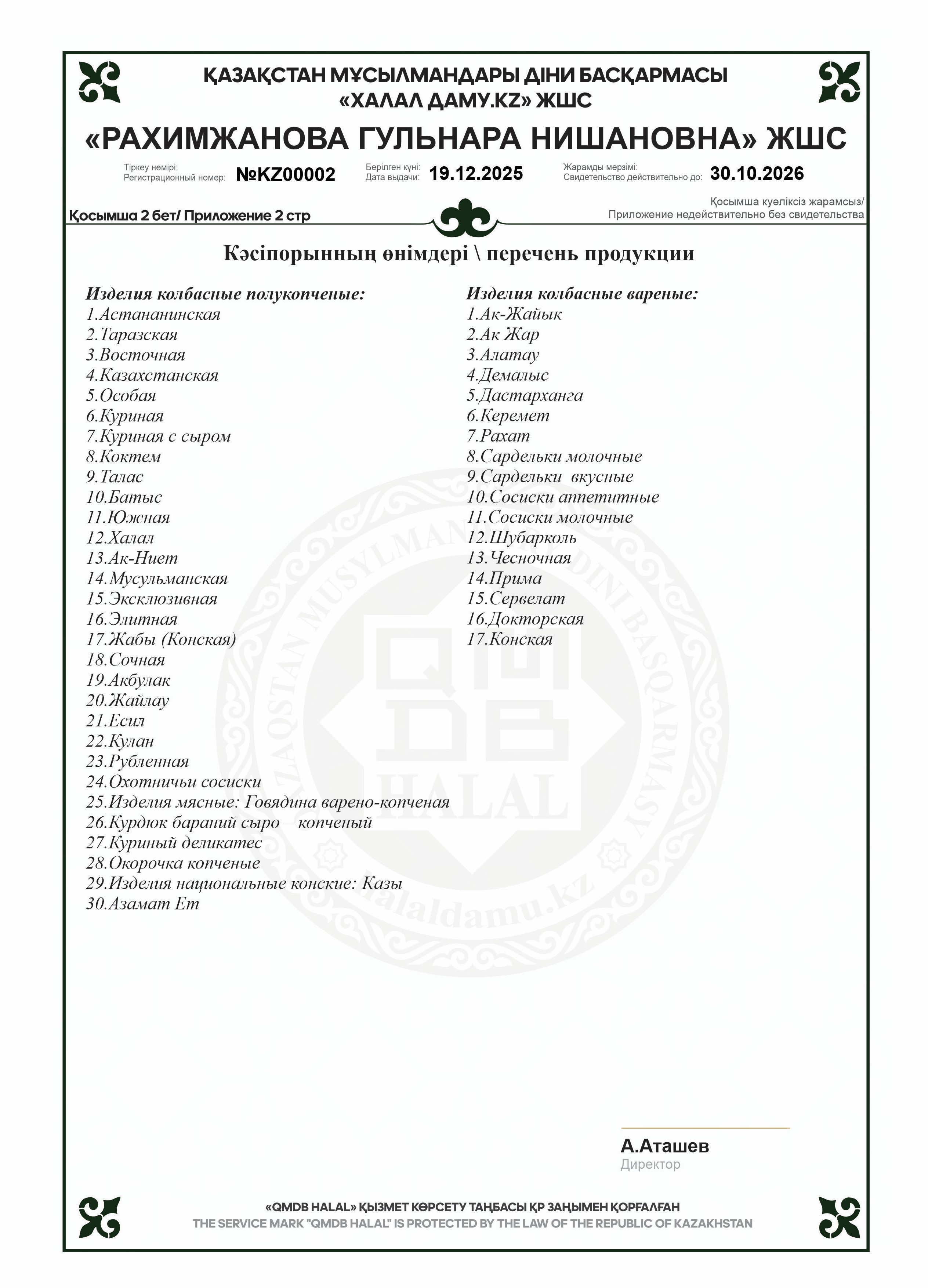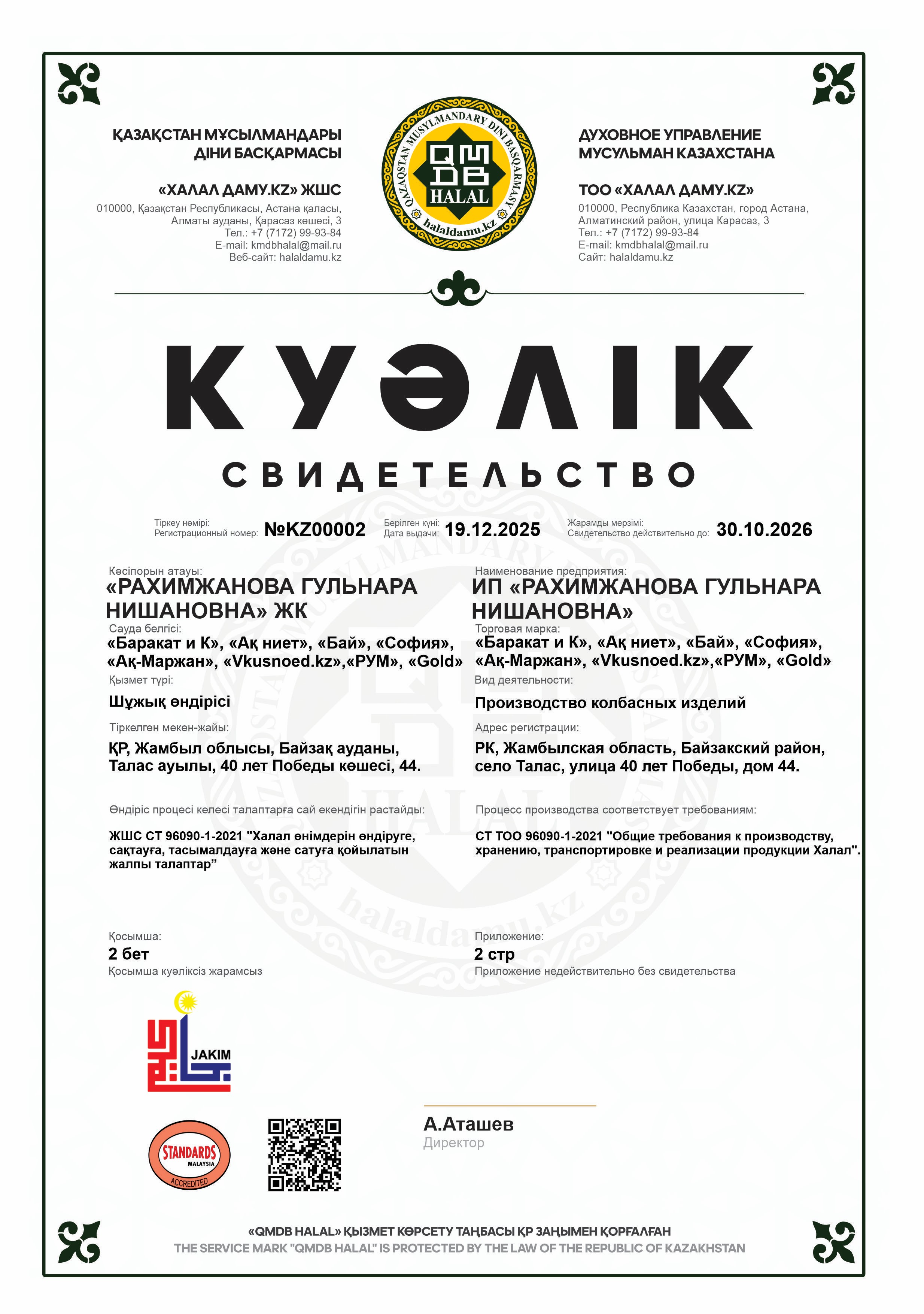 «Баракат и К», «Ақ ниет», «Бай», «София», «Ақ-Маржан», «Vkusnoed.kz»,«РУМ», «Gold»