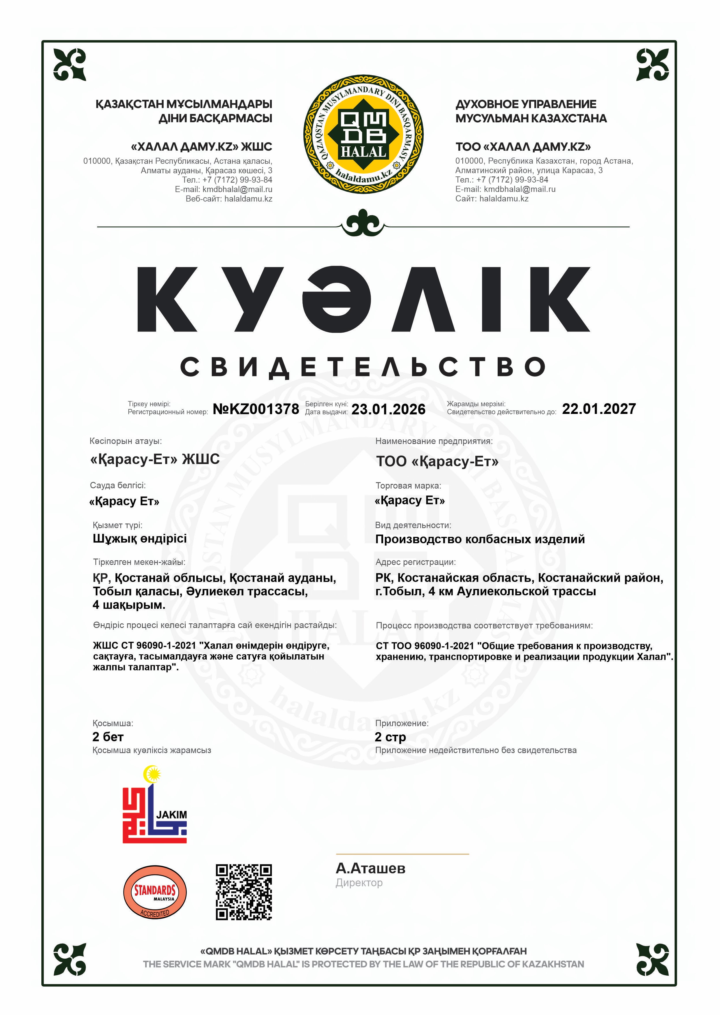 22.01.2027 ге дейін сертификатталған