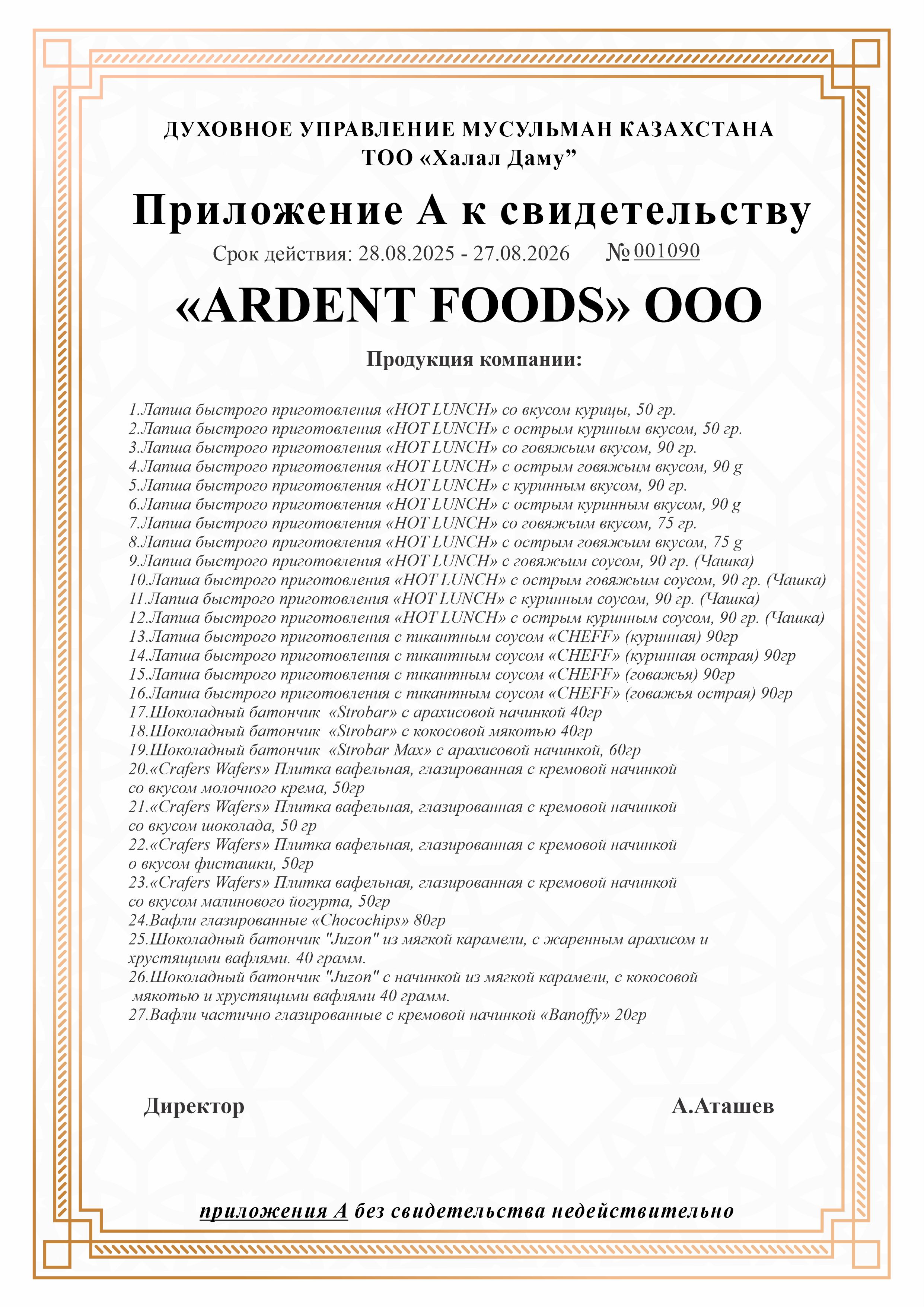 «Hot Lunch», «Stobar», «CHEFF», «Banoffy», «Choco Chips», «Crafers Wafers»