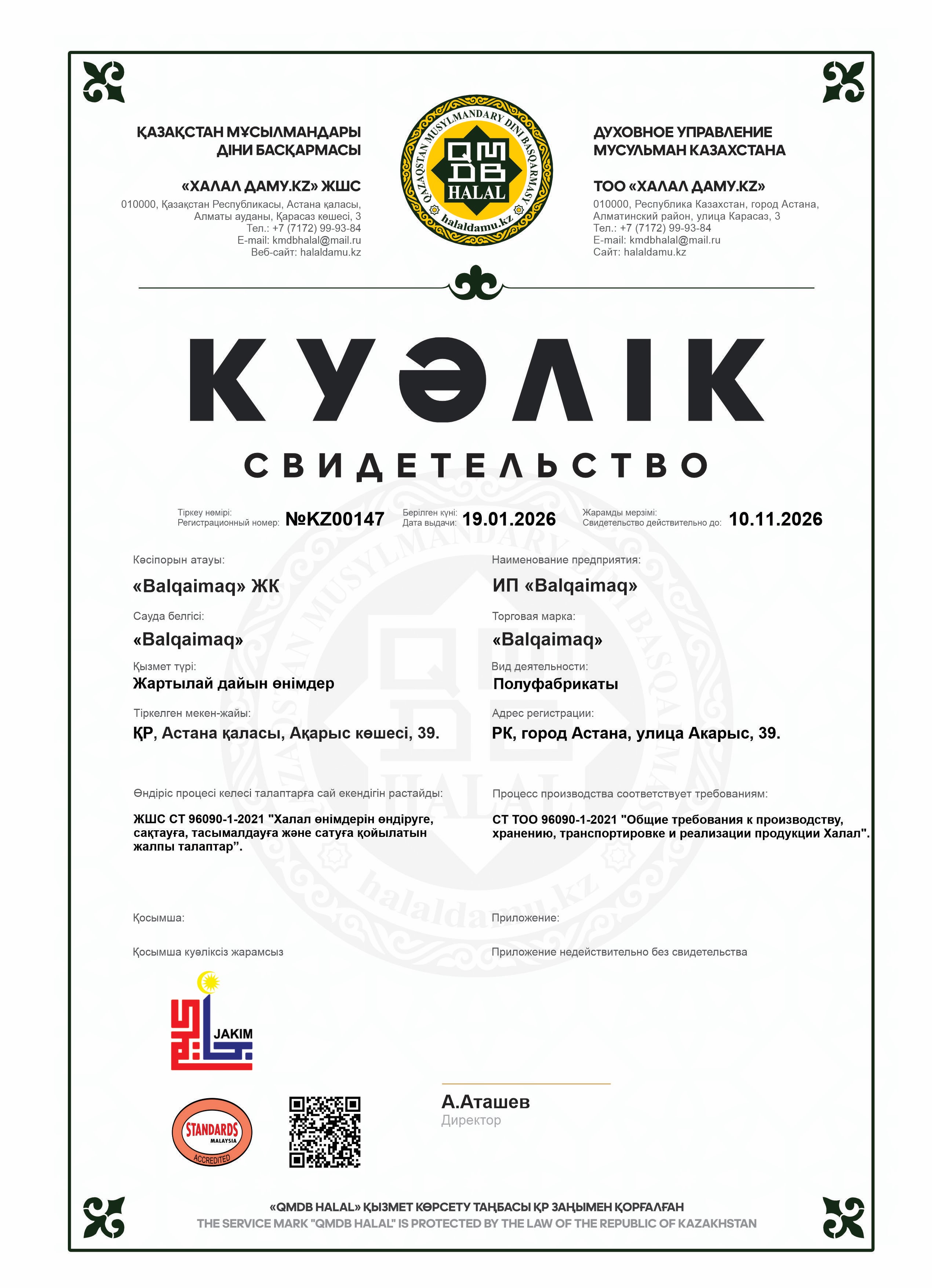 10.11.2027 ге дейін сертификатталған