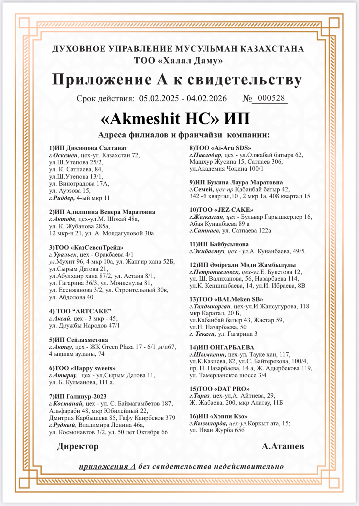 1)ИП Дюсюпова Салтанат