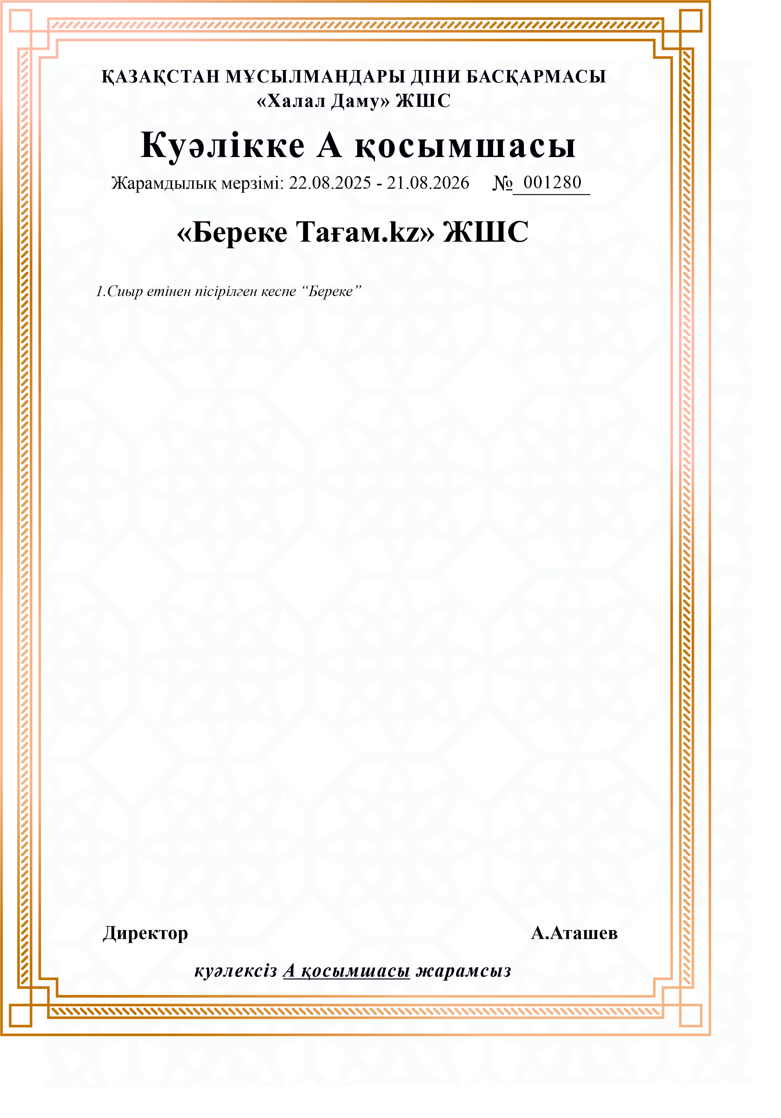 «Береке Тағам.kz» ЖШС