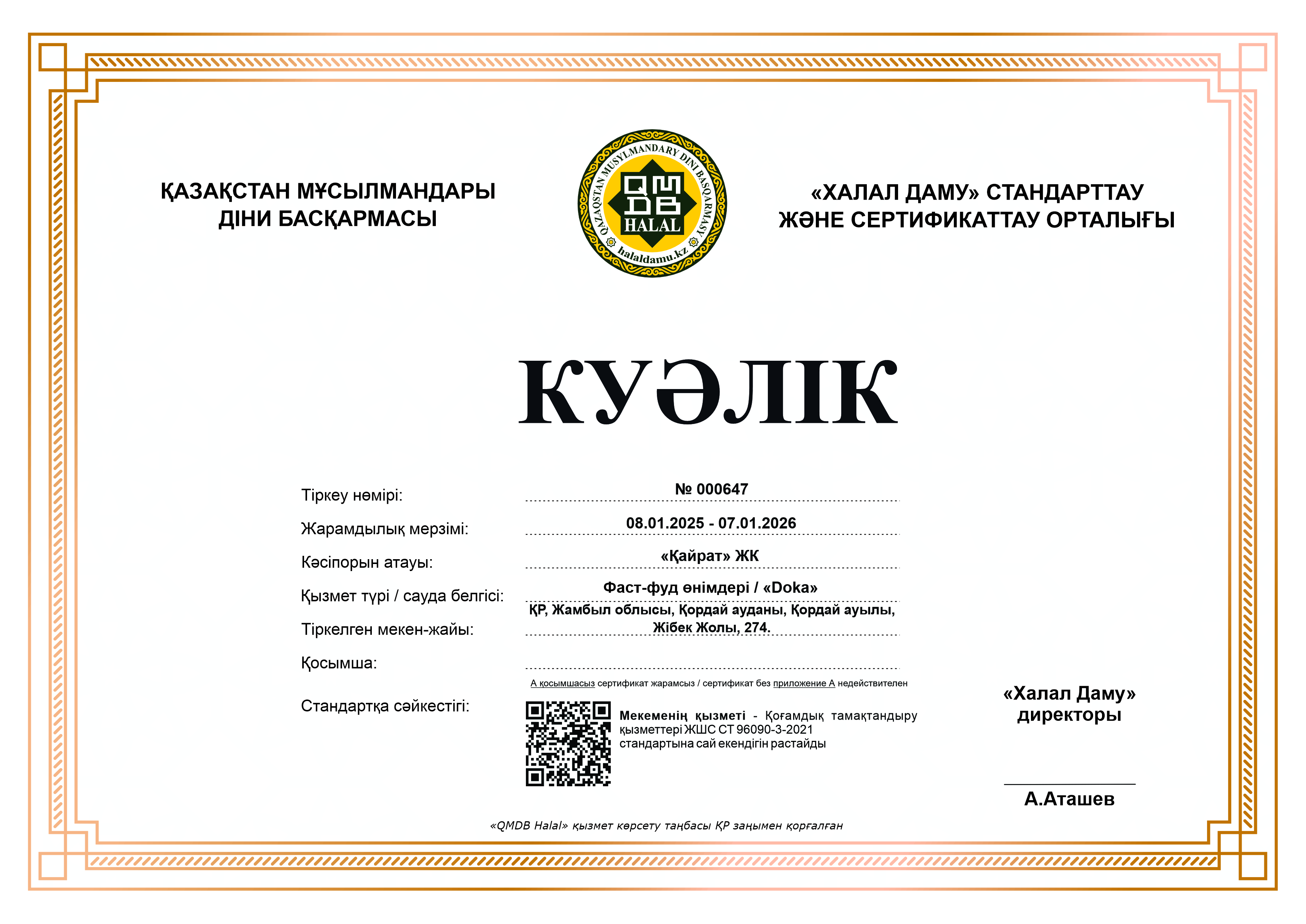 ҚР, Жамбыл облысы, Қордай ауданы, Қордай ауылы, Жібек Жолы, 274