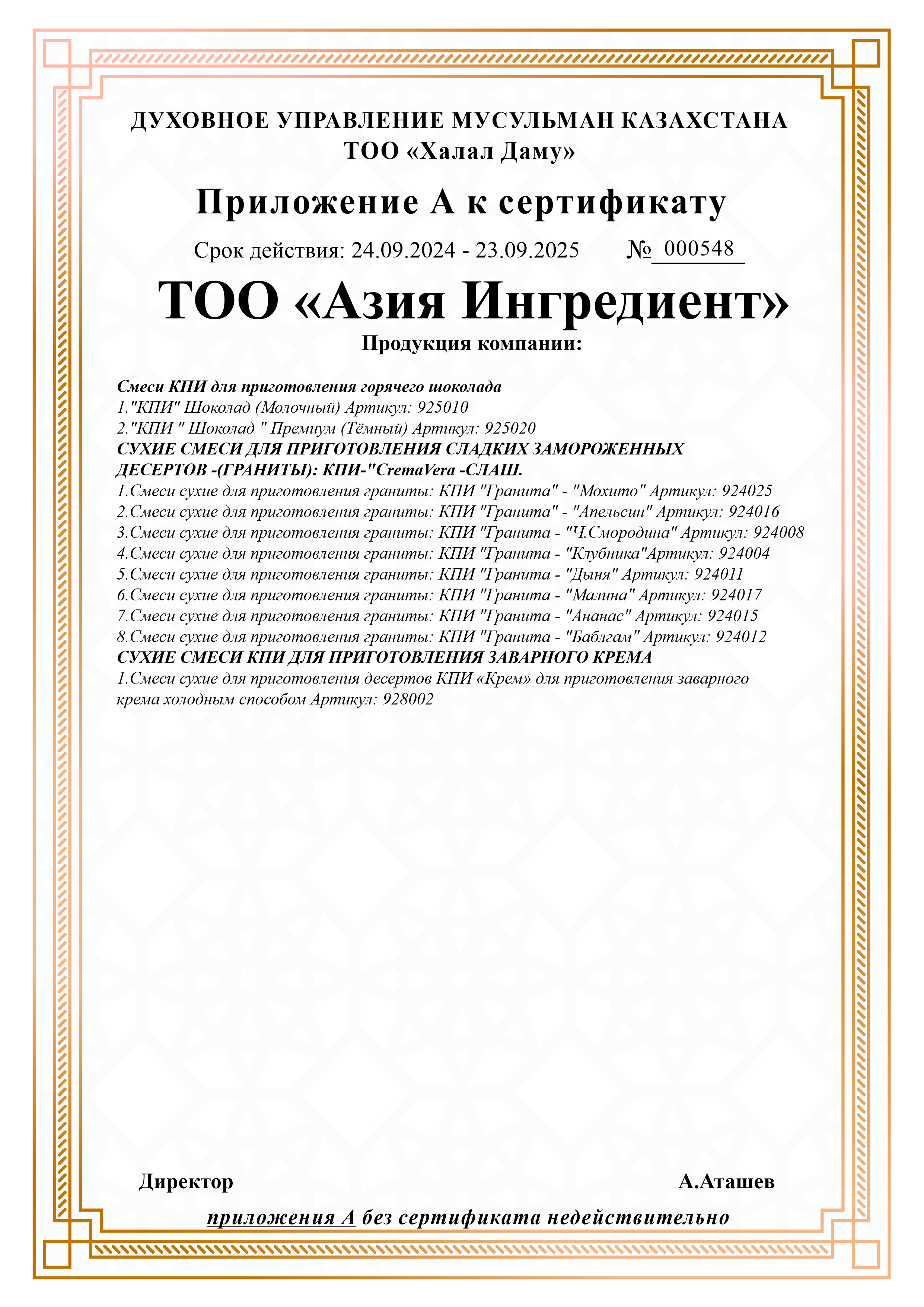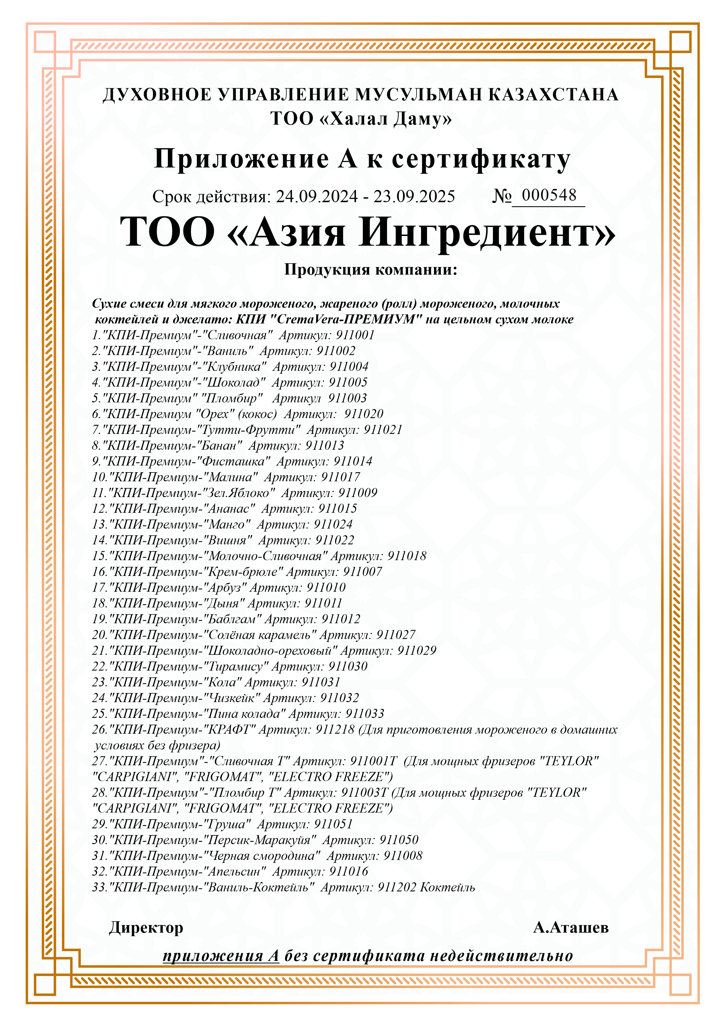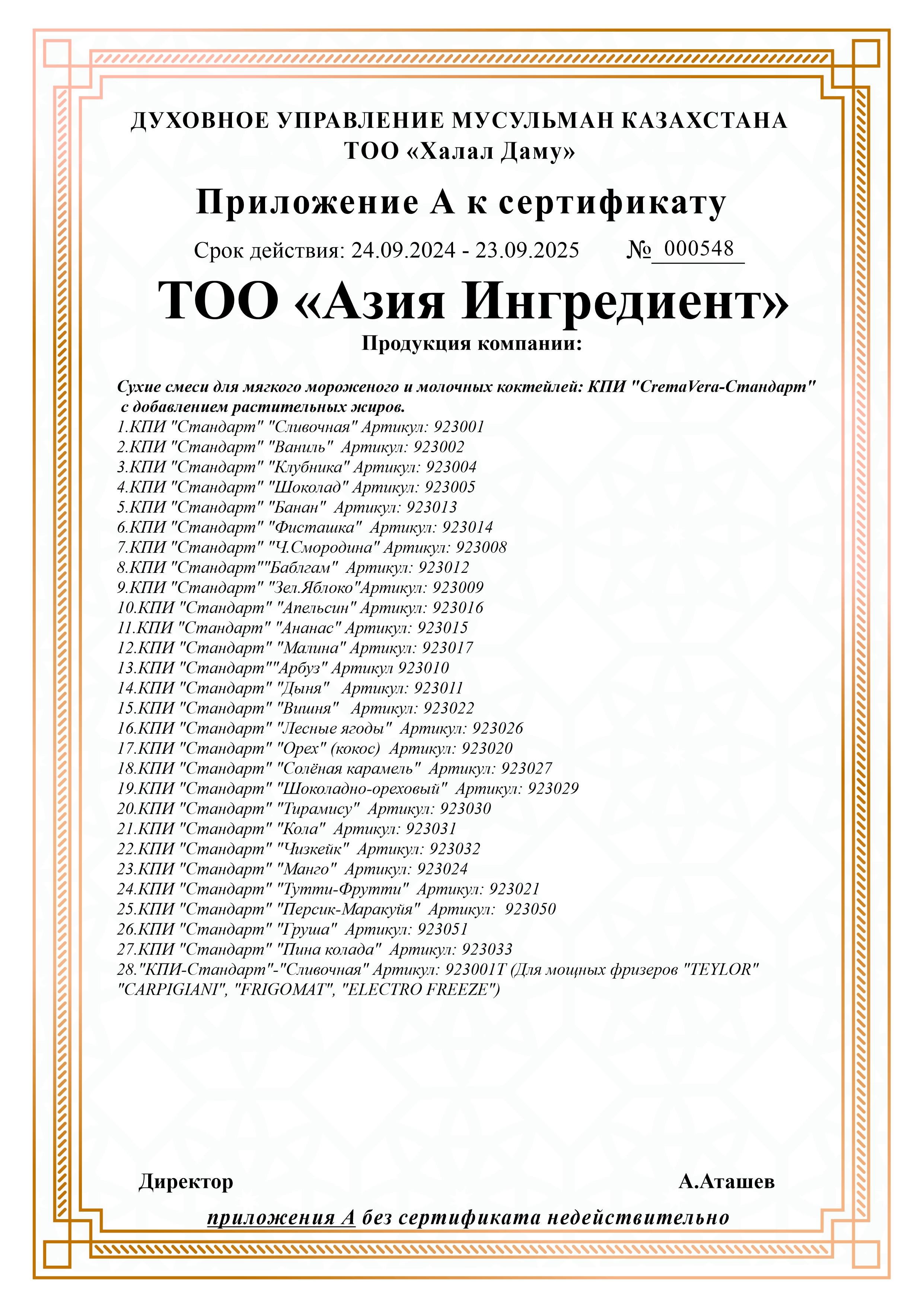 25. КПИ Замороженный десерт стандарт-«Пинта калада»
