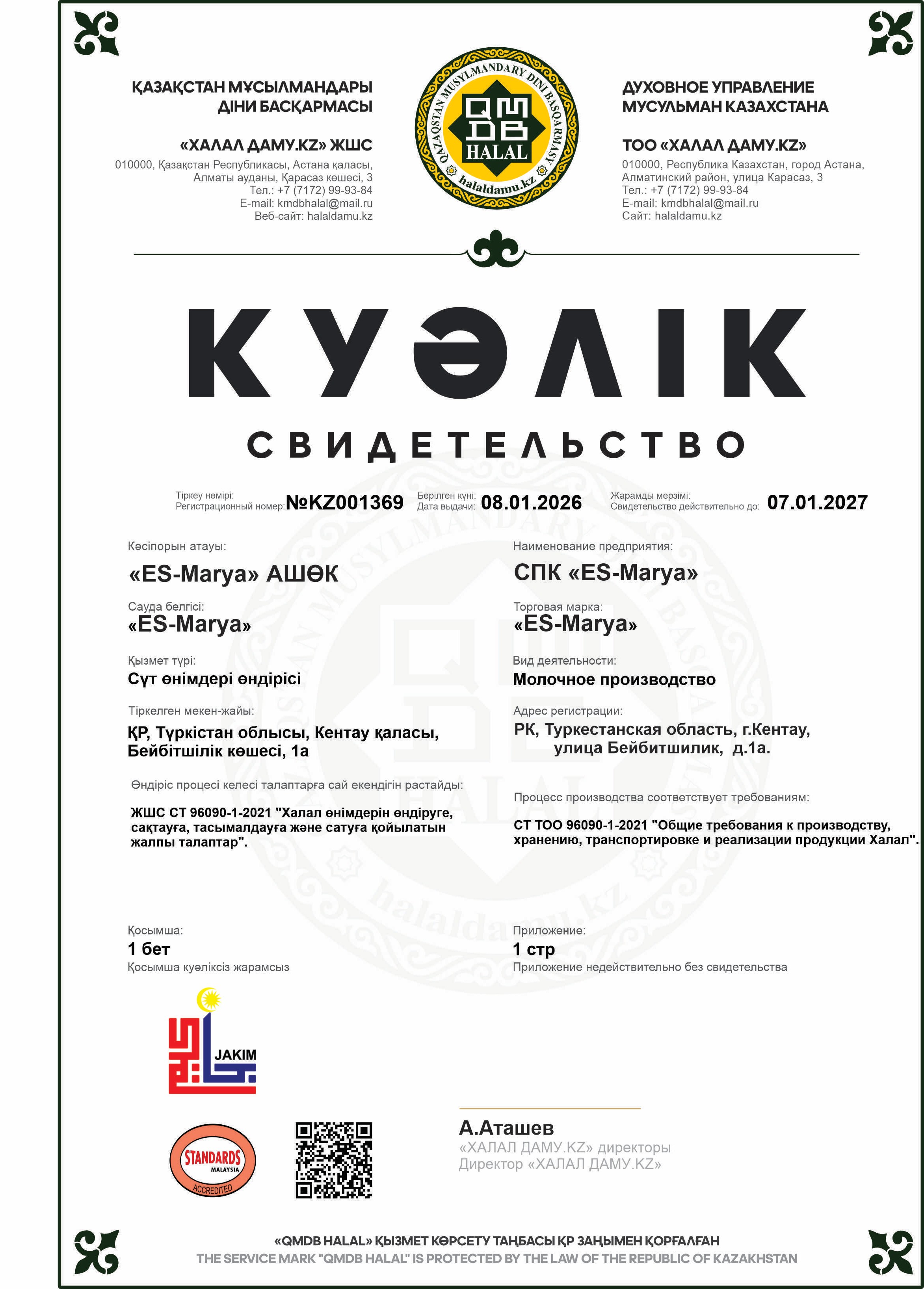 07.01.2027 ге дейін сертификатталған