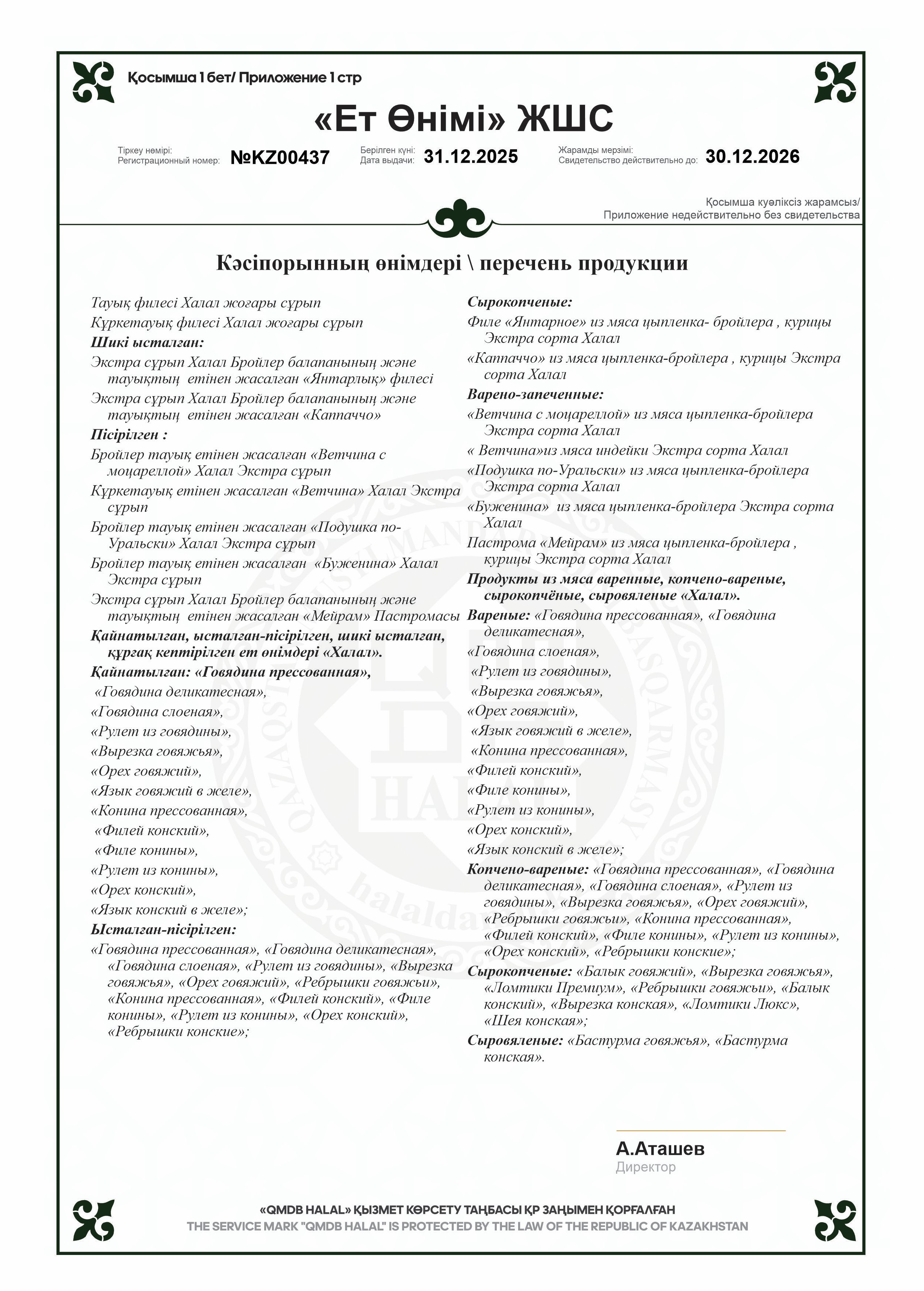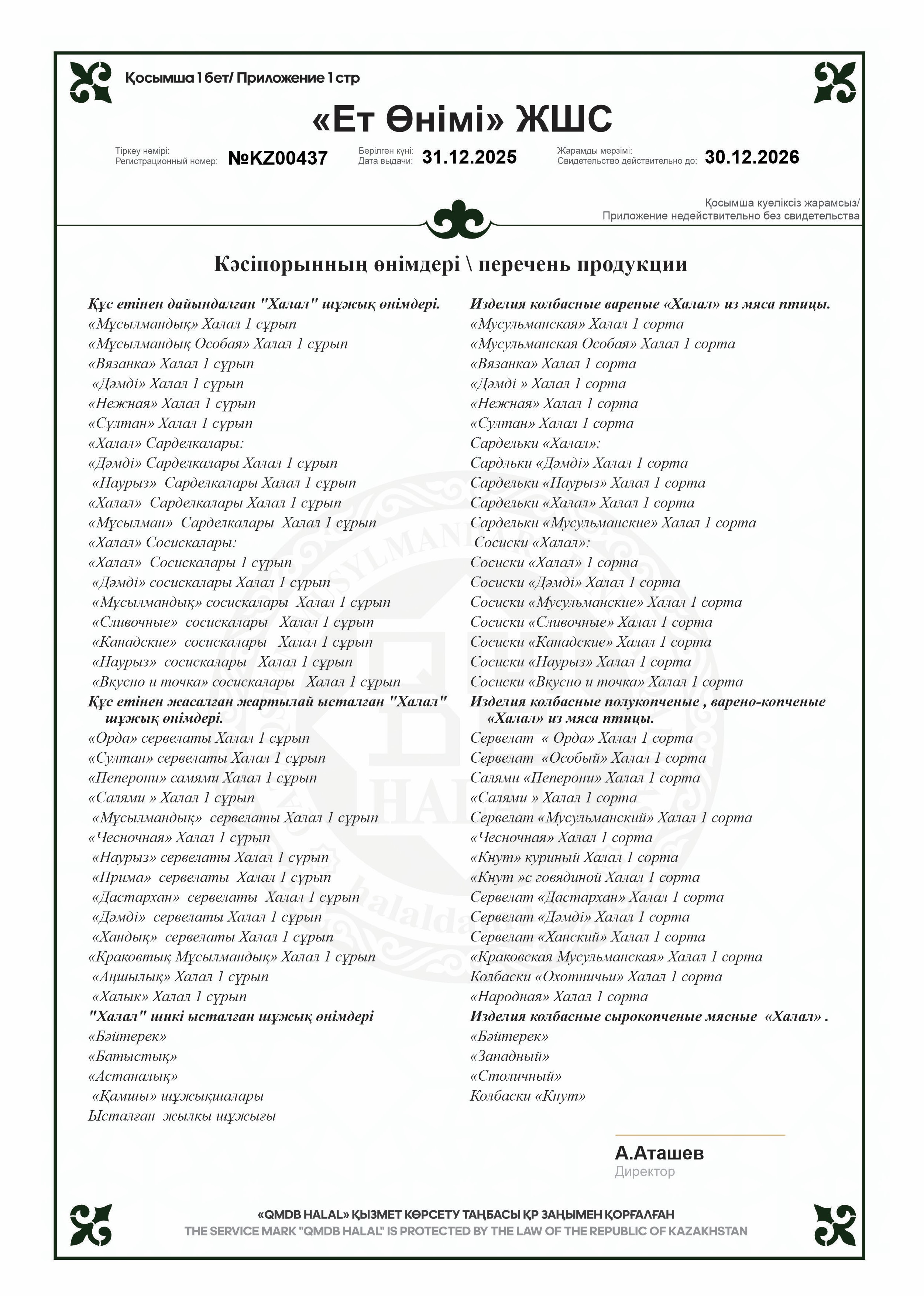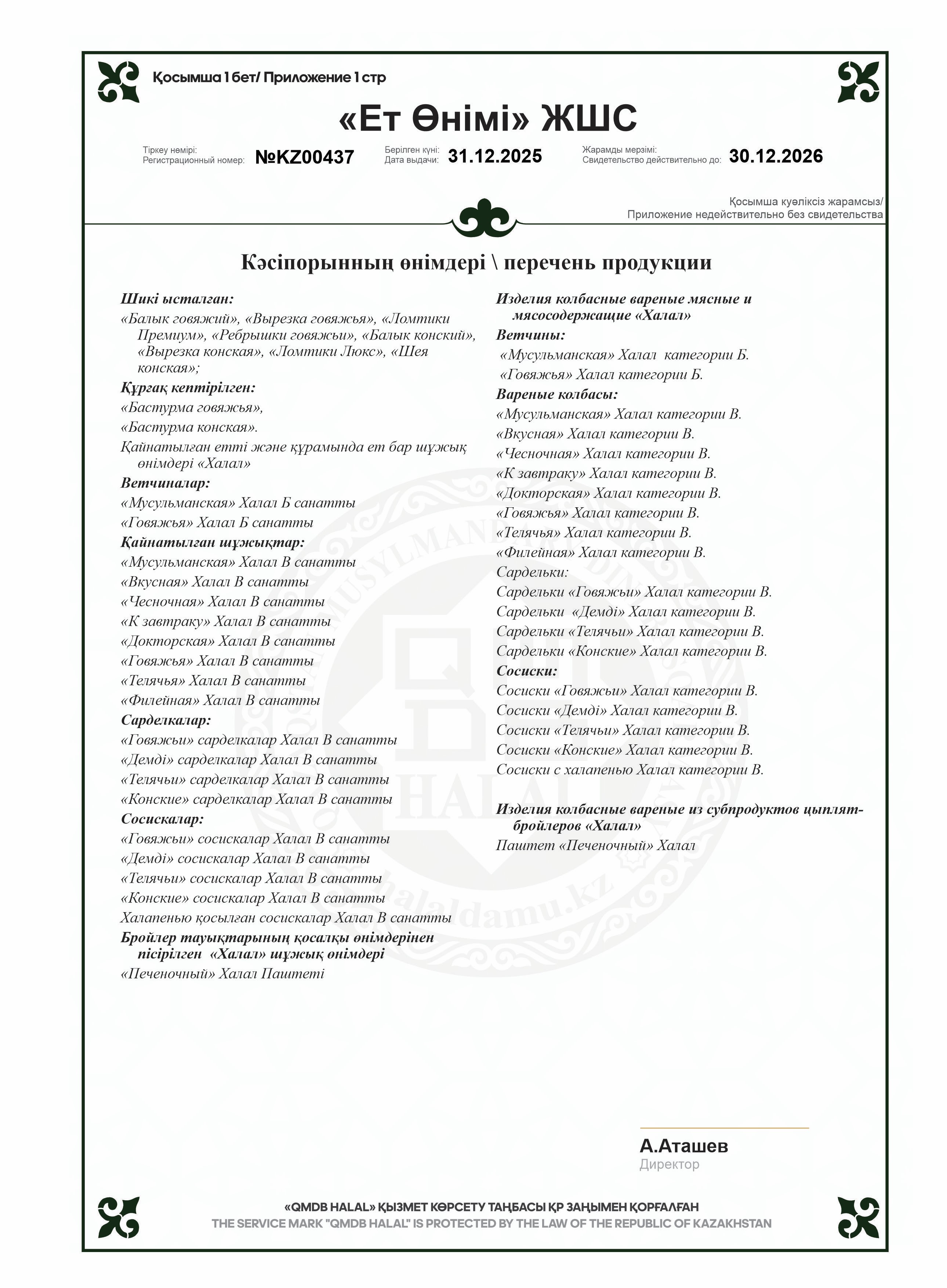 «Шұжық» Халал мясной продукт, категории В