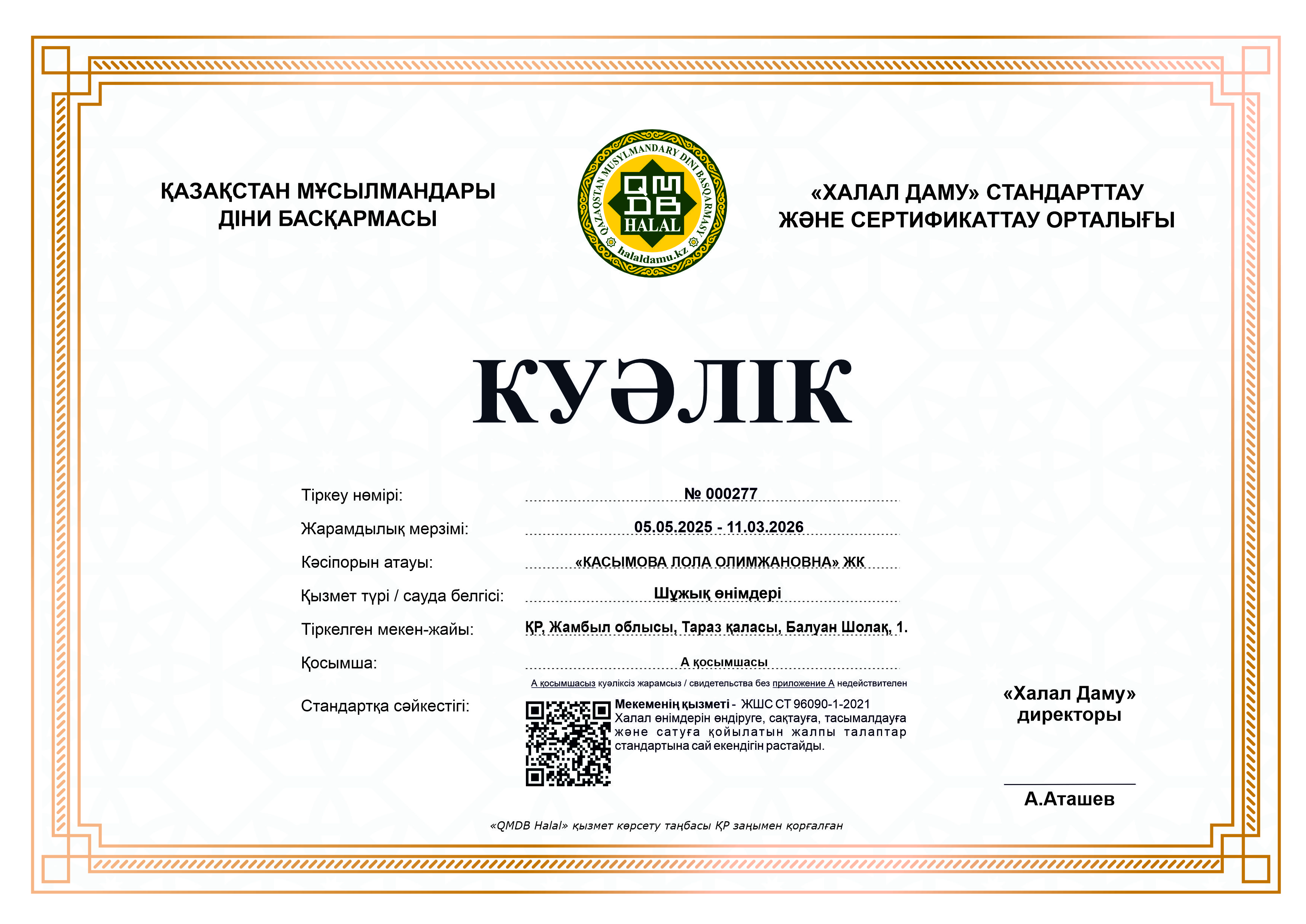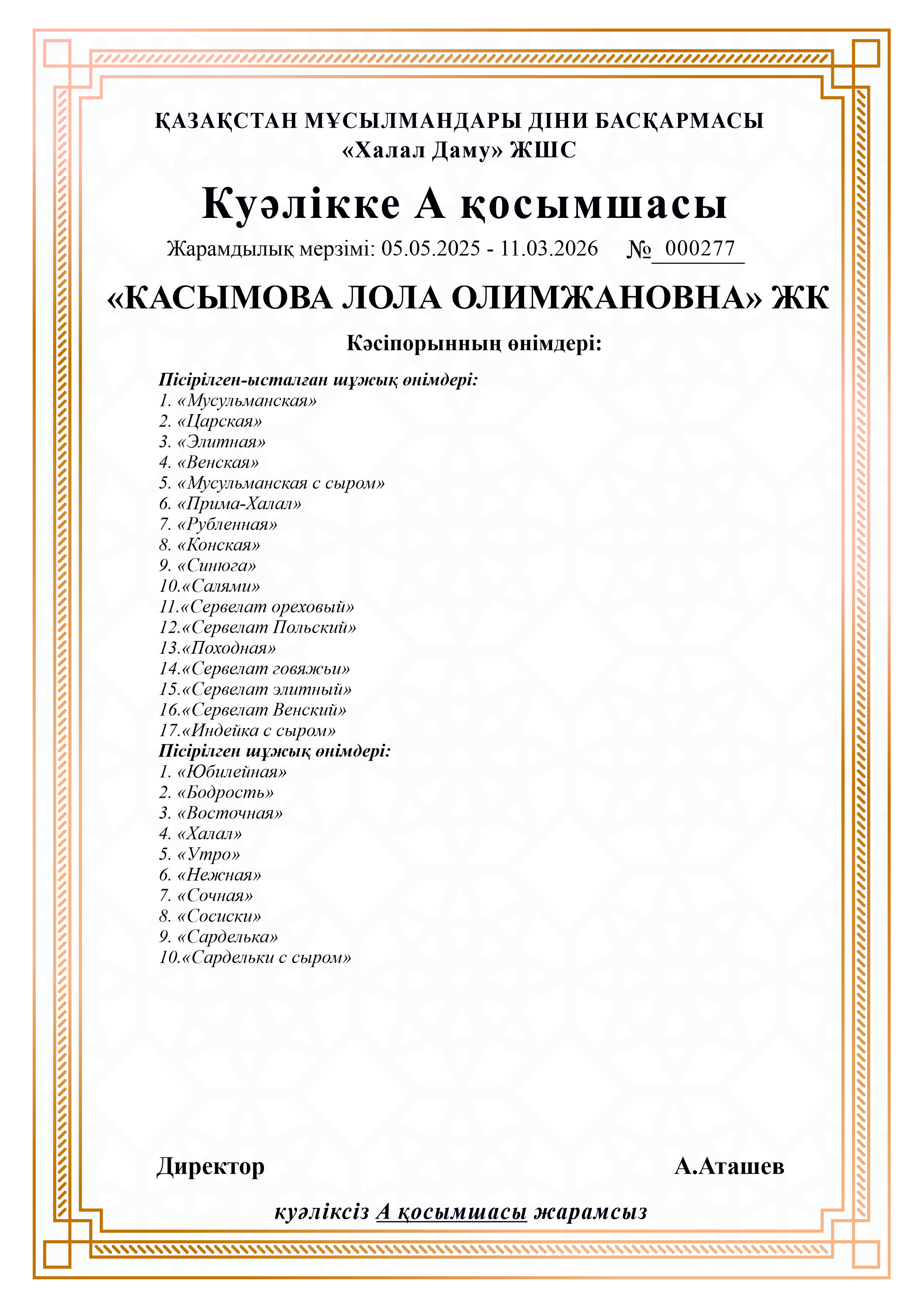 «КАСЫМОВА ЛОЛА ОЛИМЖАНОВНА» ЖК