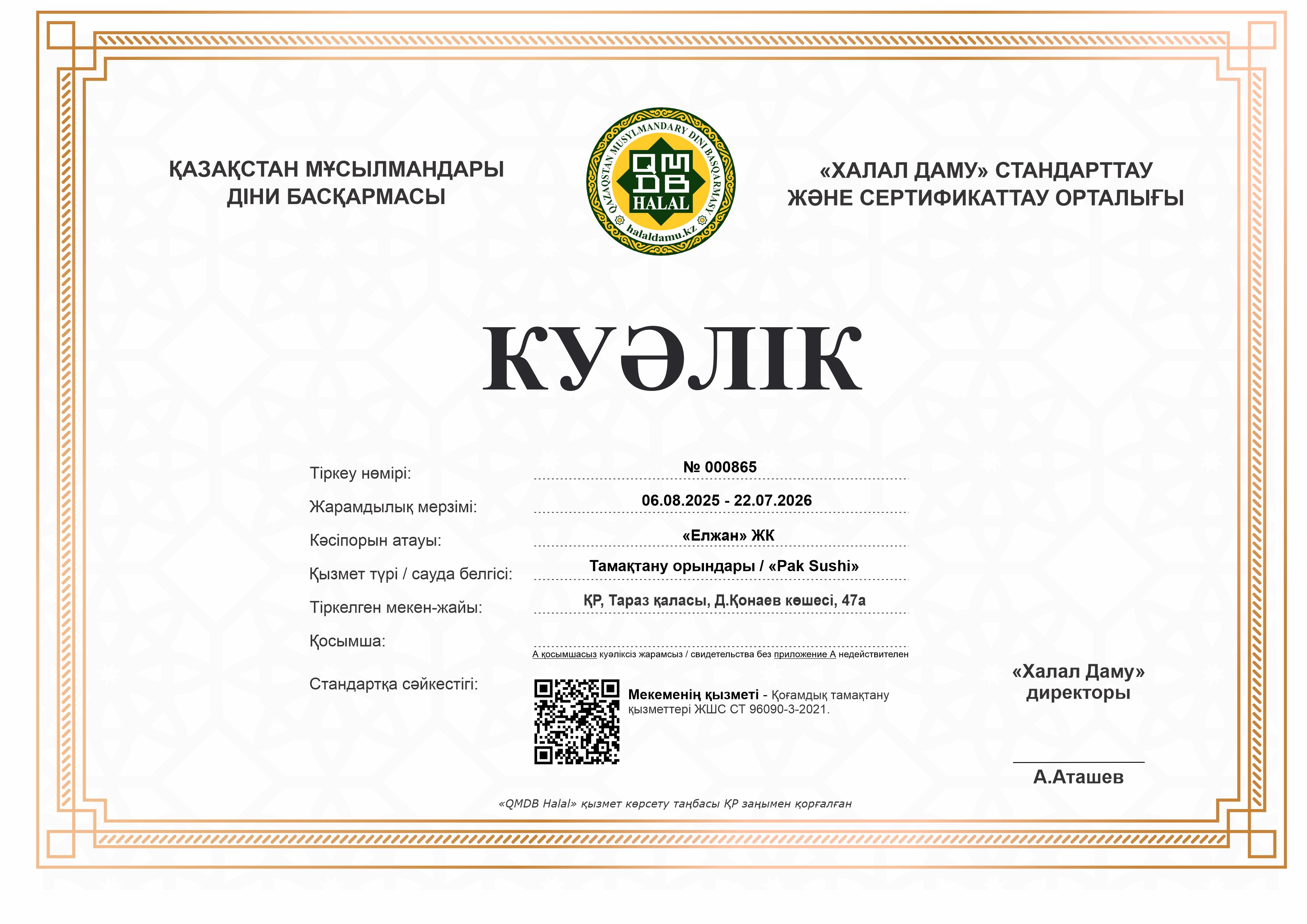 22.07.2026 ге дейін сертификатталған