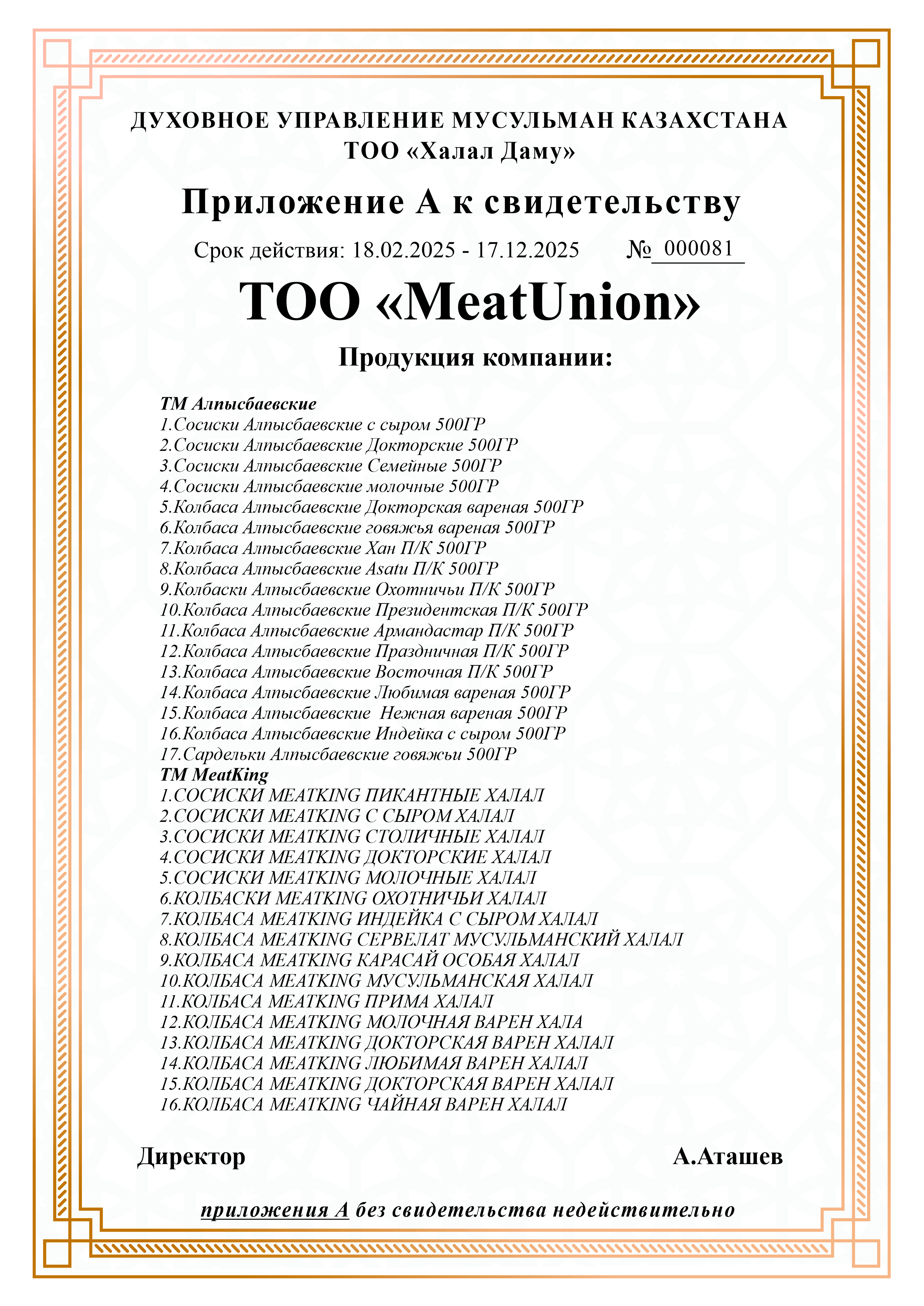 8. Колбаса Карасай Мусульманская Именная
