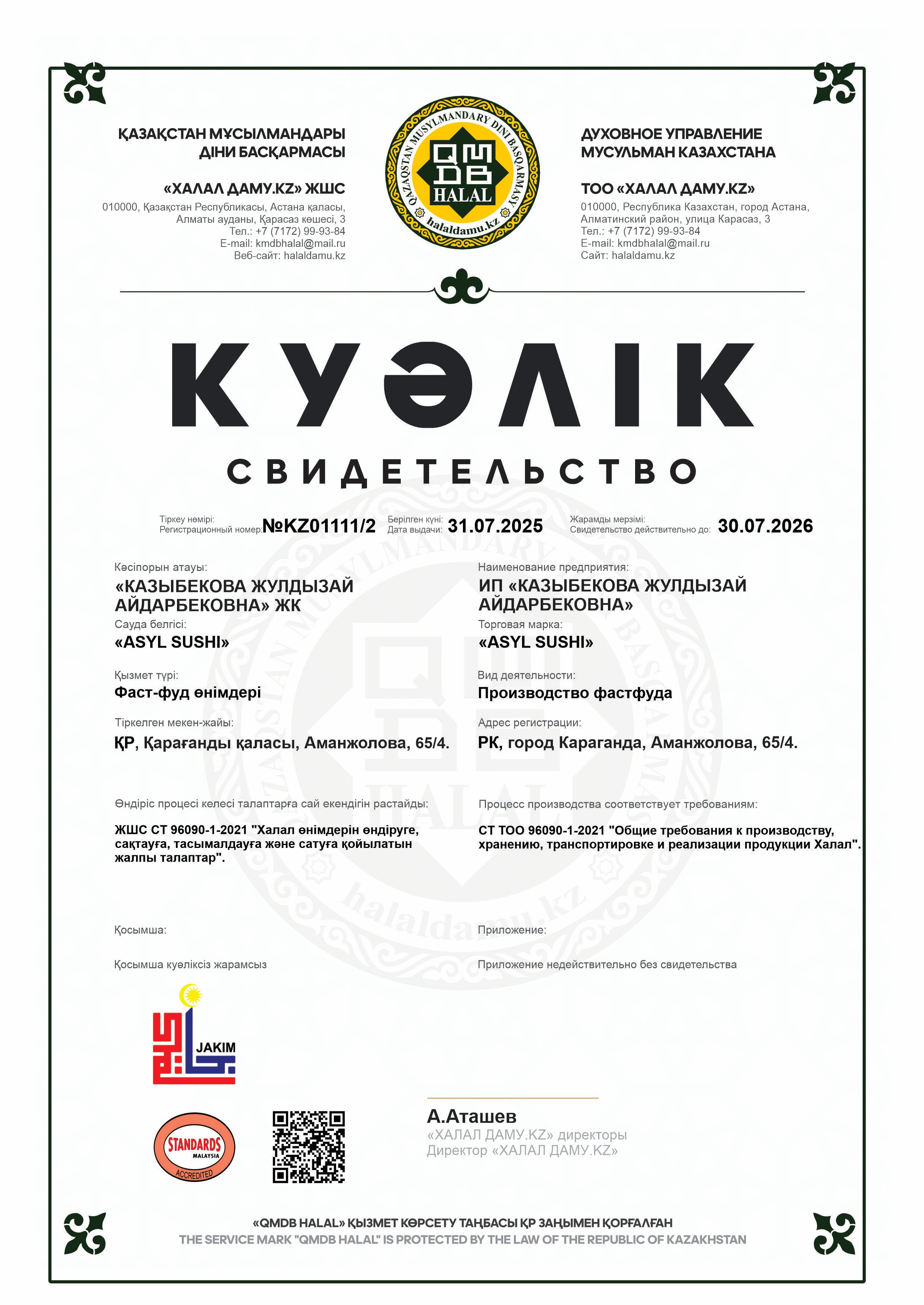 30.07.2026 ге дейін сертификатталған