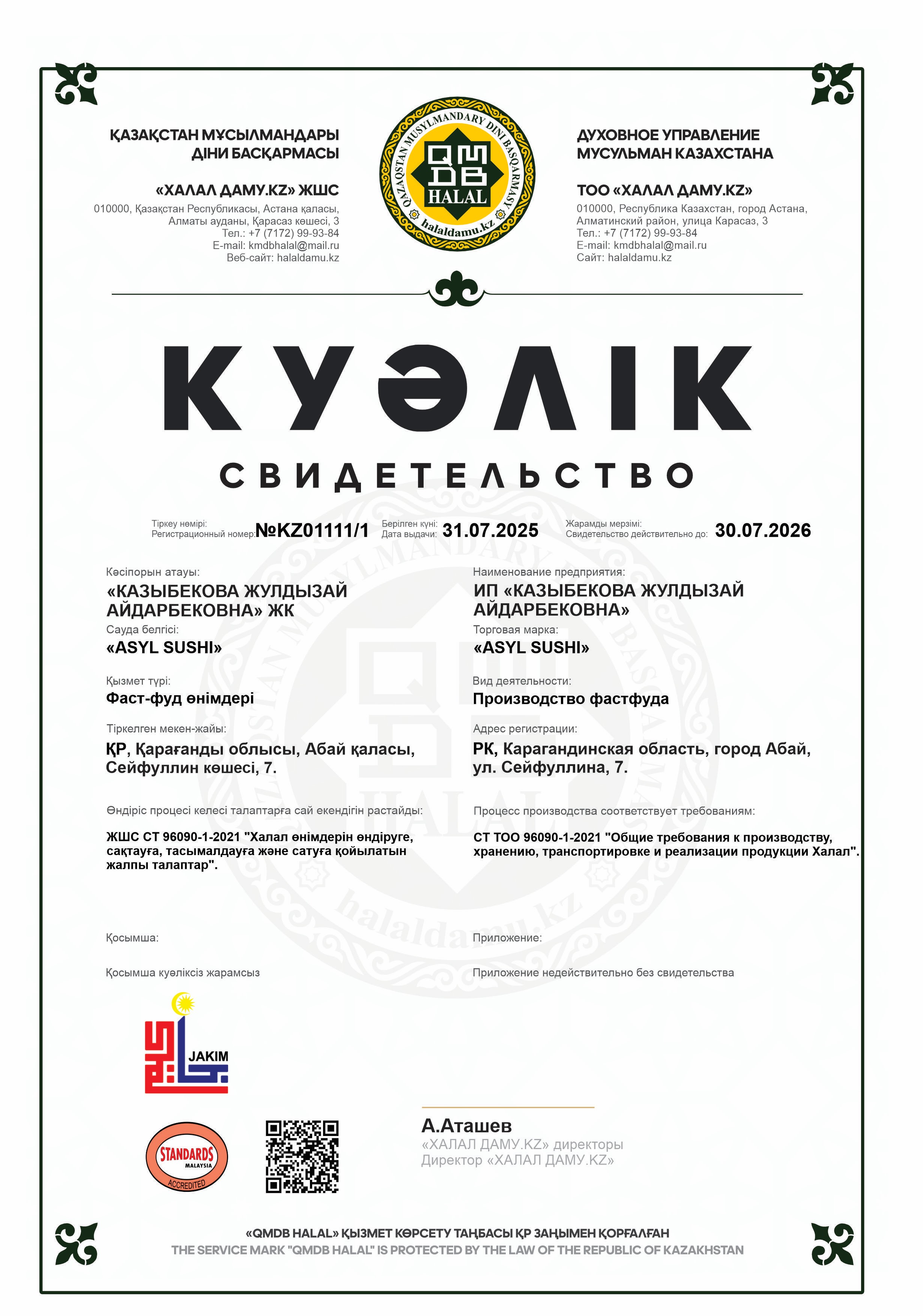 30.07.2026 ге дейін сертификатталған
