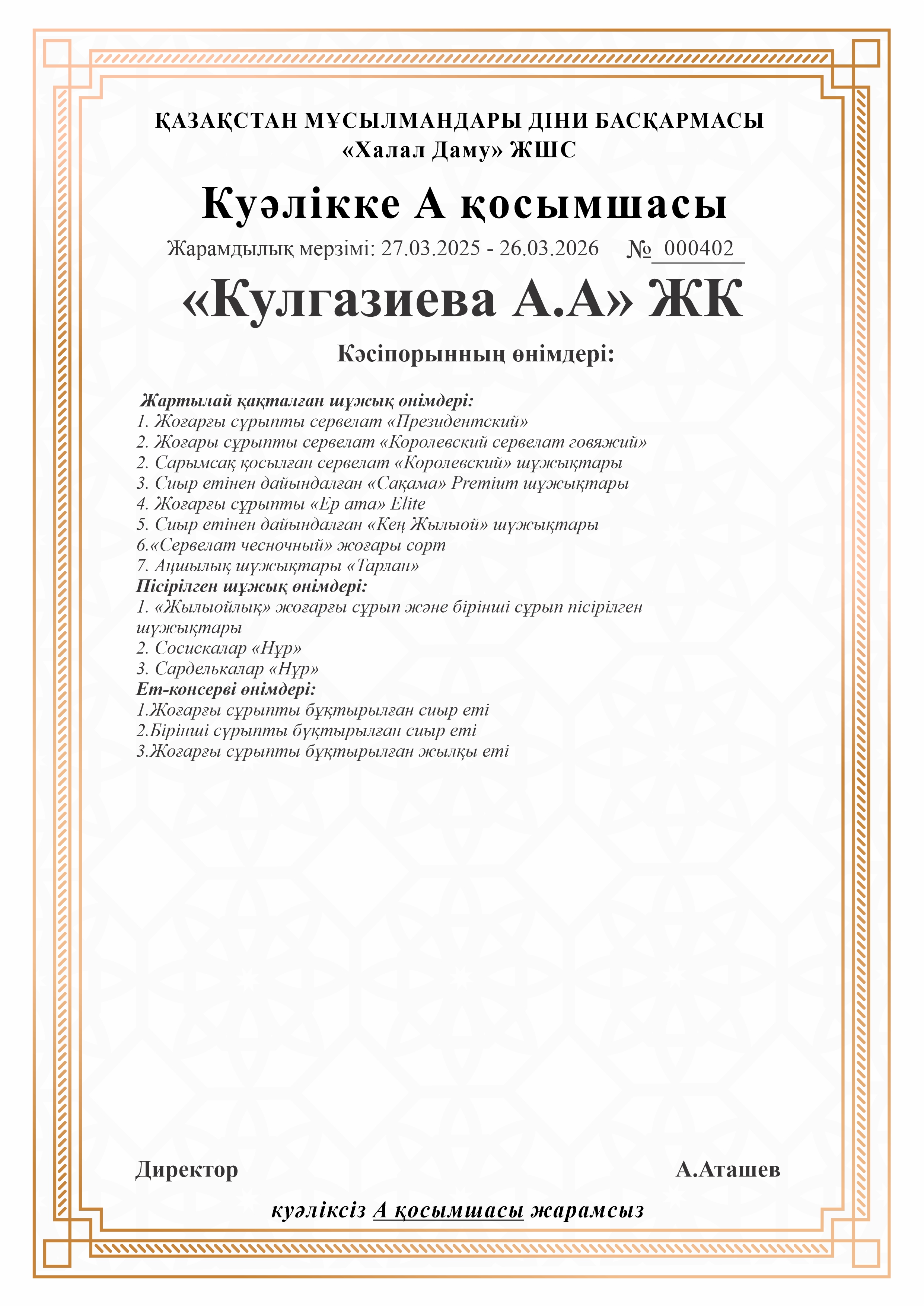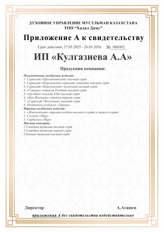 1. «Жылыойская» вареная колбаса высшего сорта и первого сорта