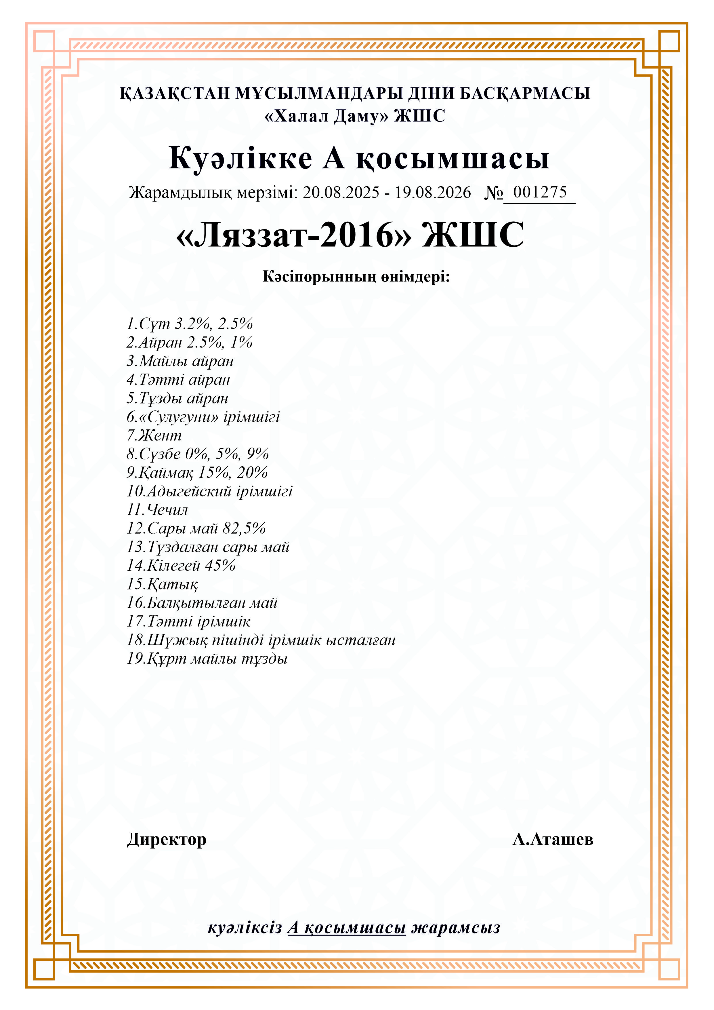 19.08.2026 ге дейін сертификатталған