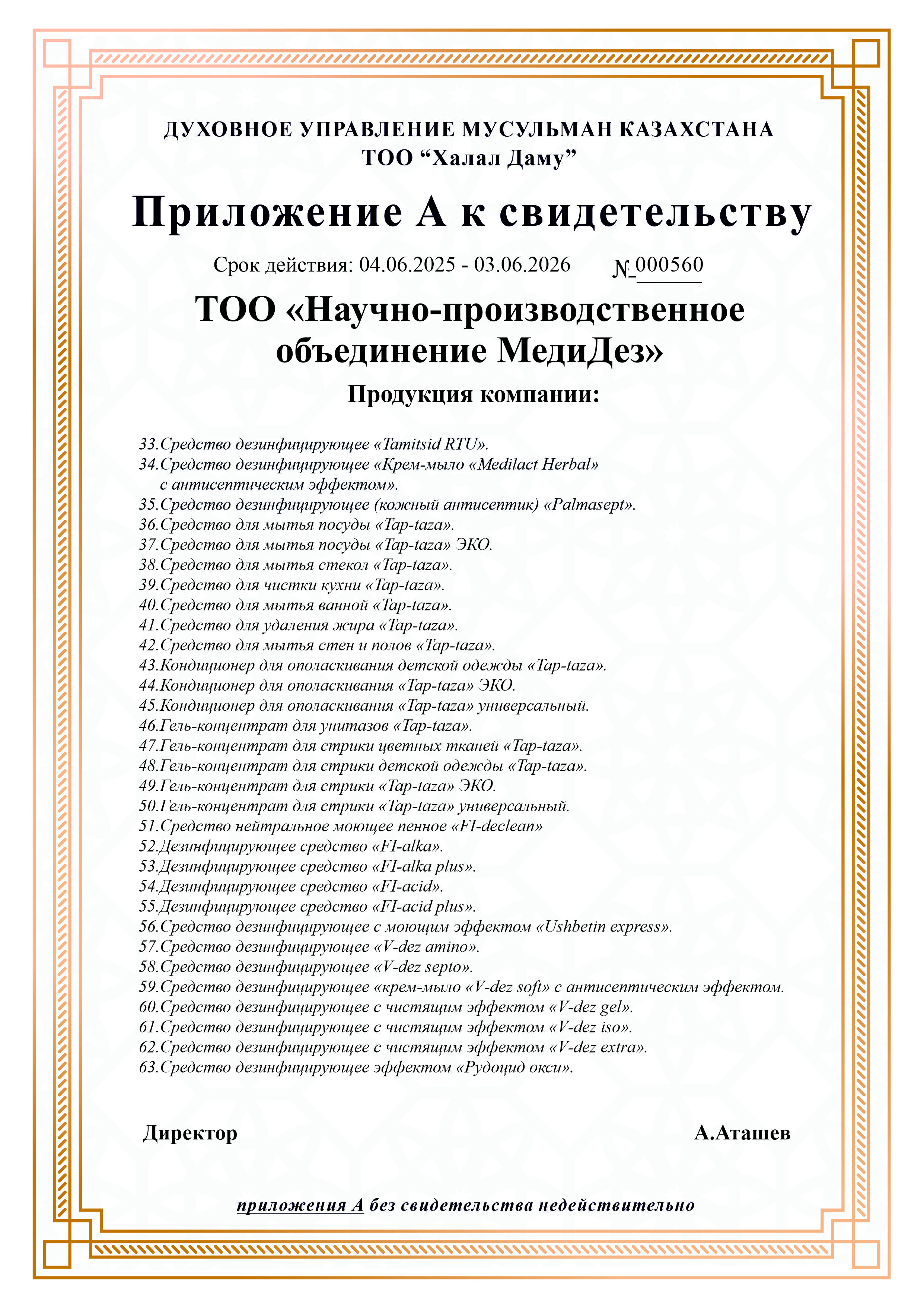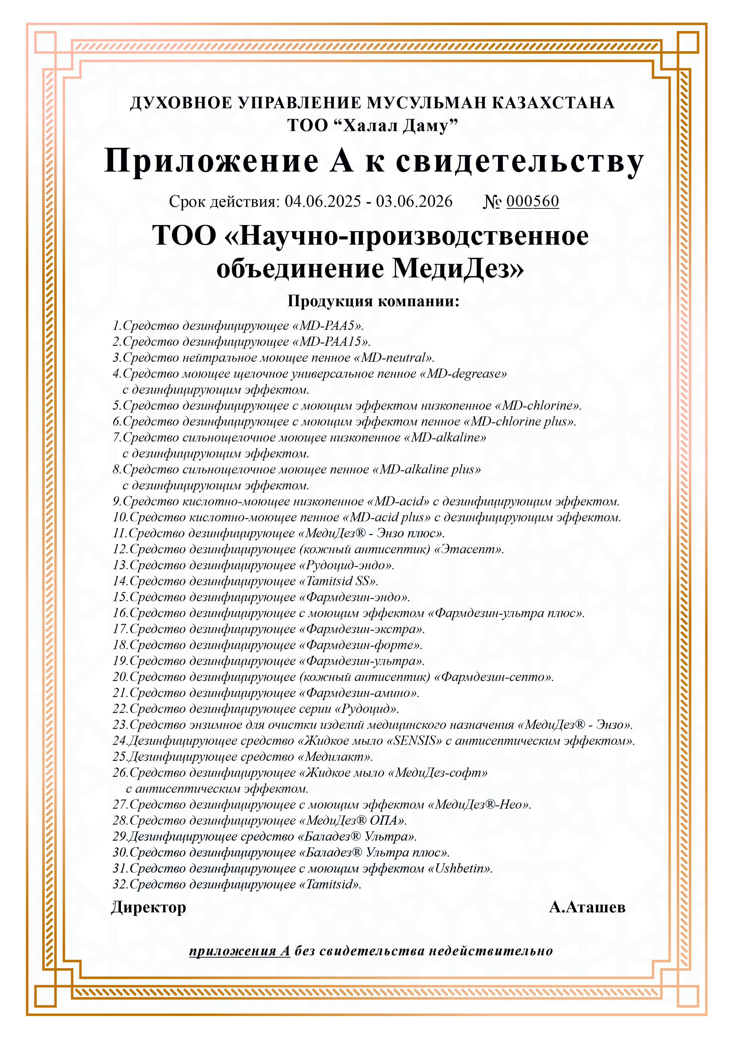 1. Средство дезинфицирующее «MD-PAA5».