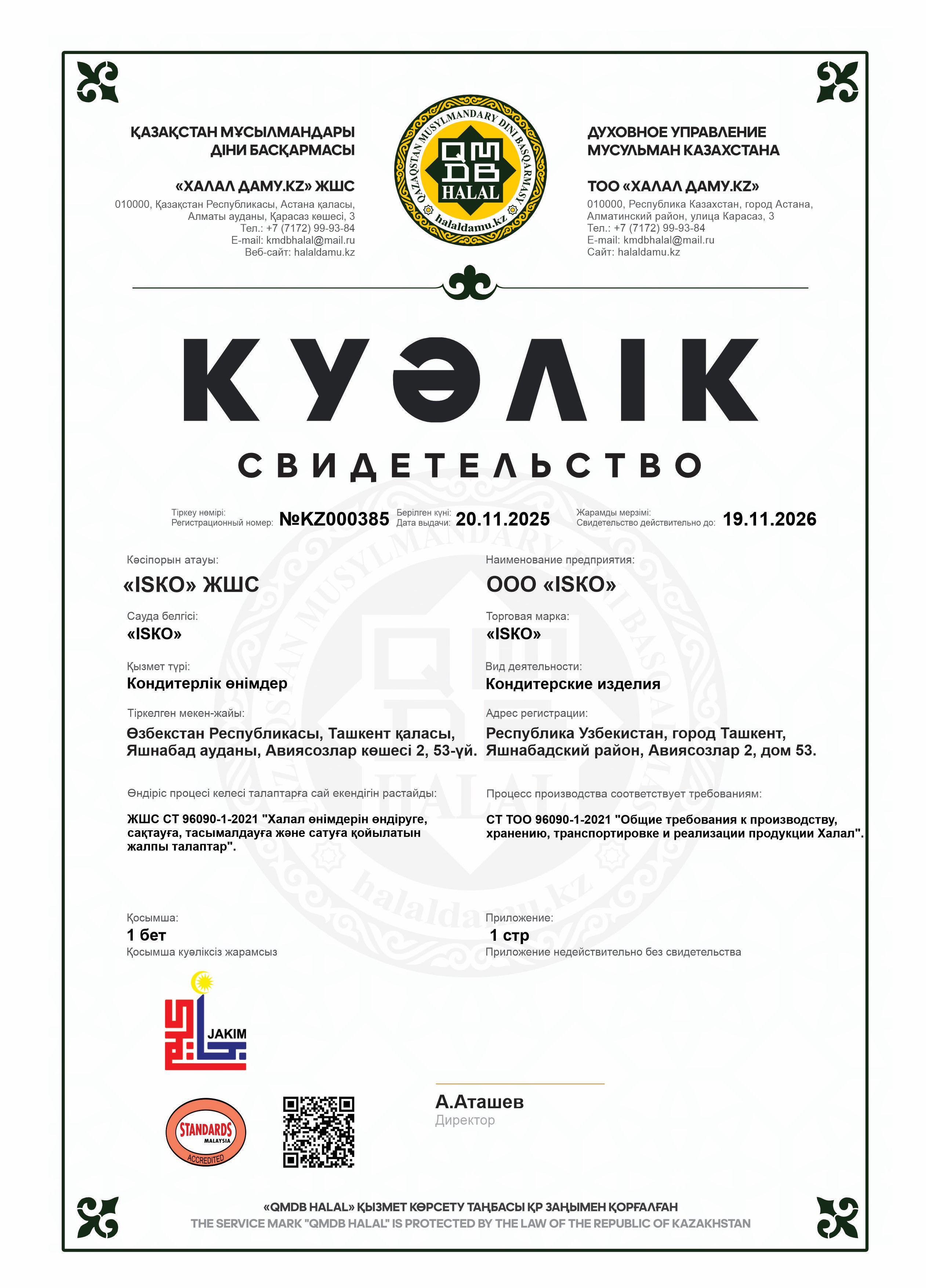 19.11.2026 ге дейін сертификатталған