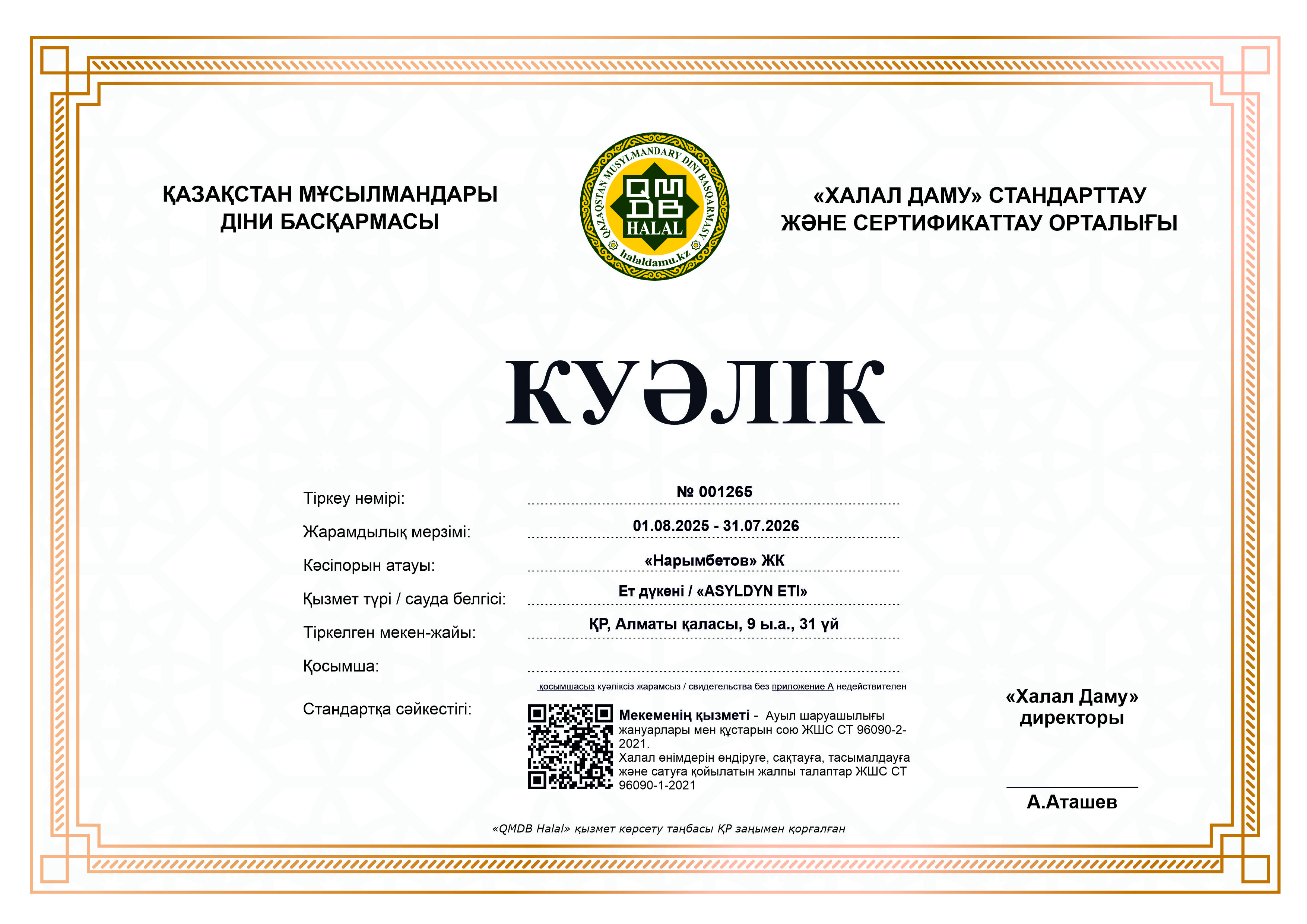 31.07.2026 ге дейін сертификатталған