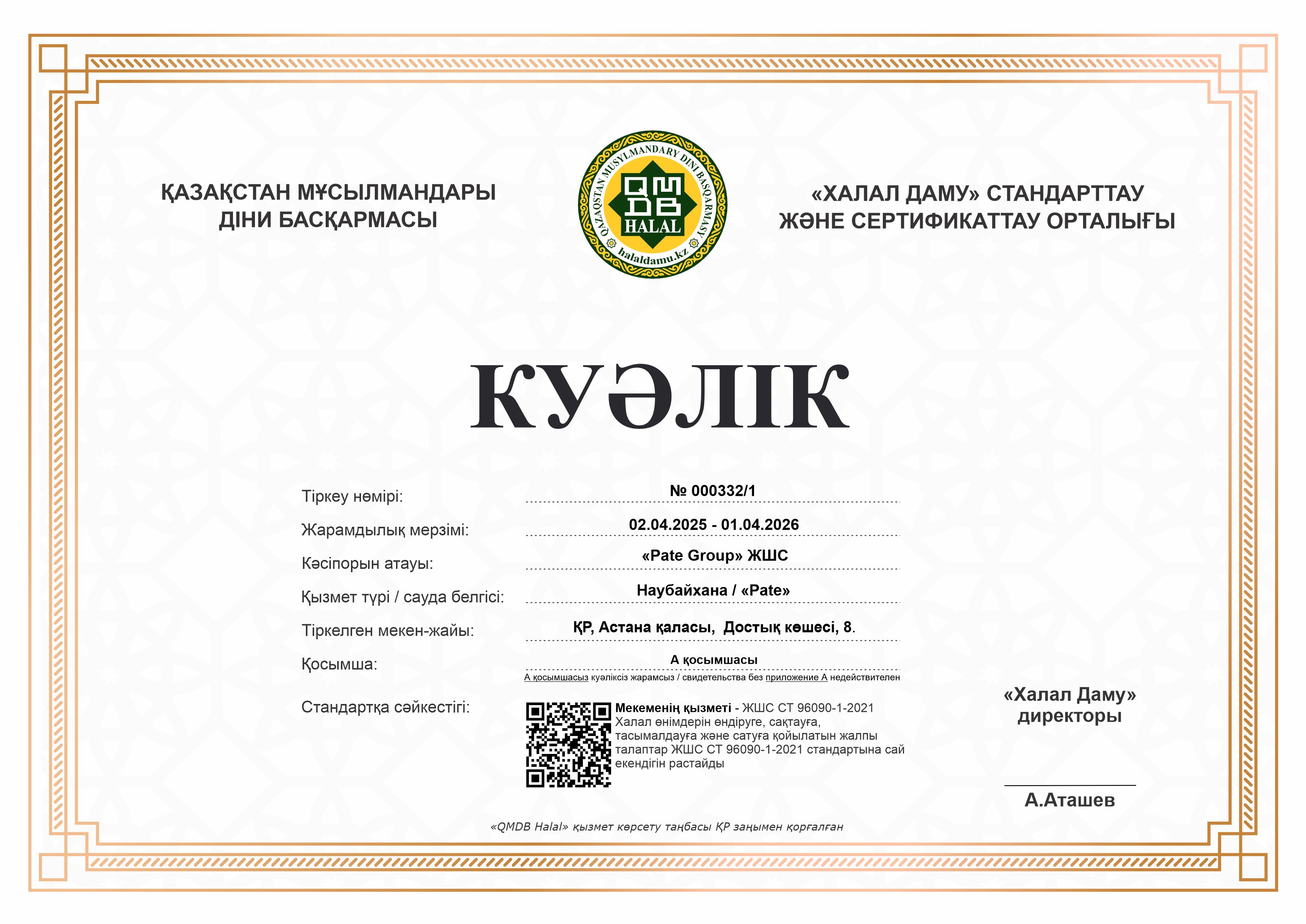 01.04.2026 ге дейін сертификатталған