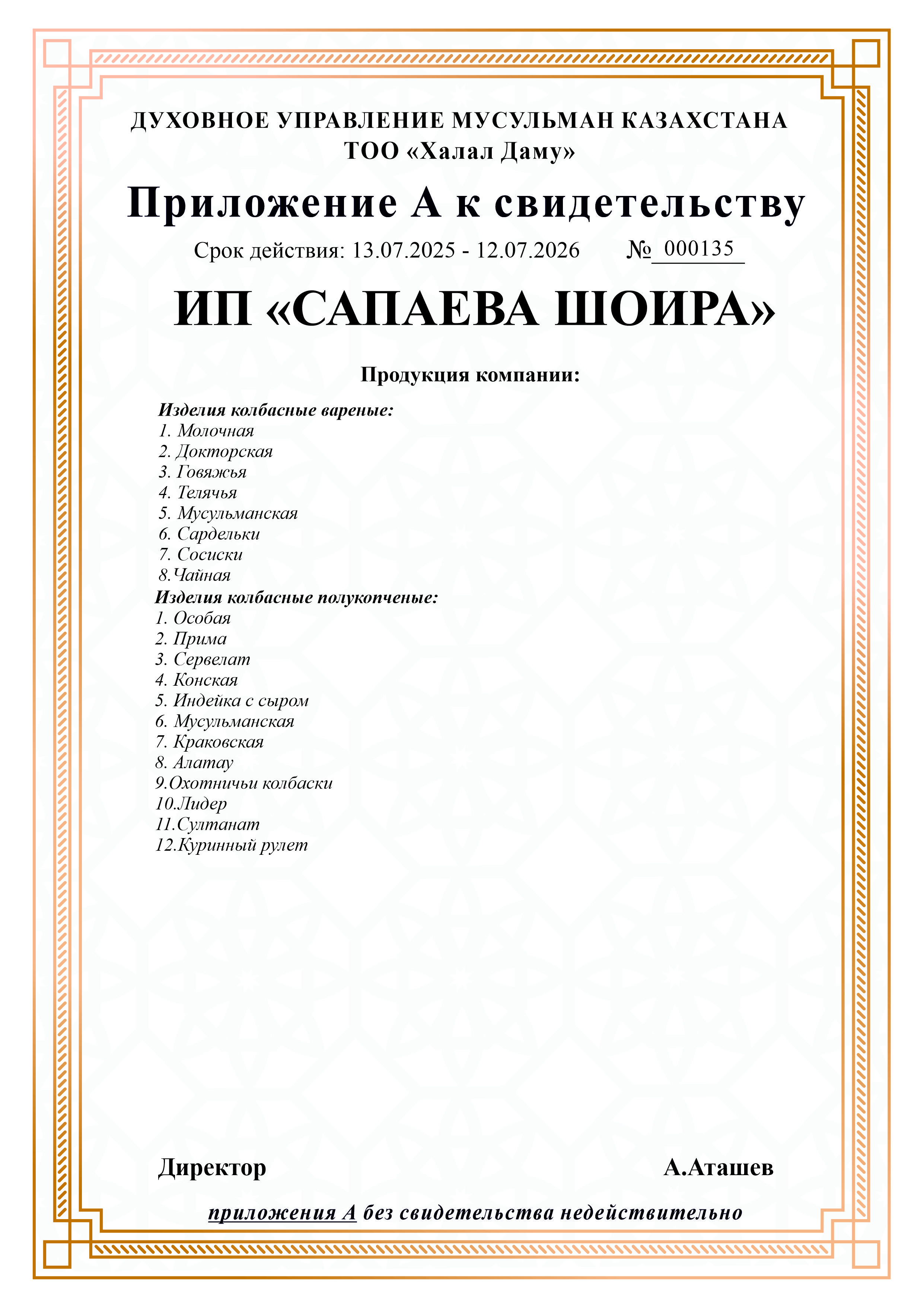 12.07.2026 ге дейін сертификатталған