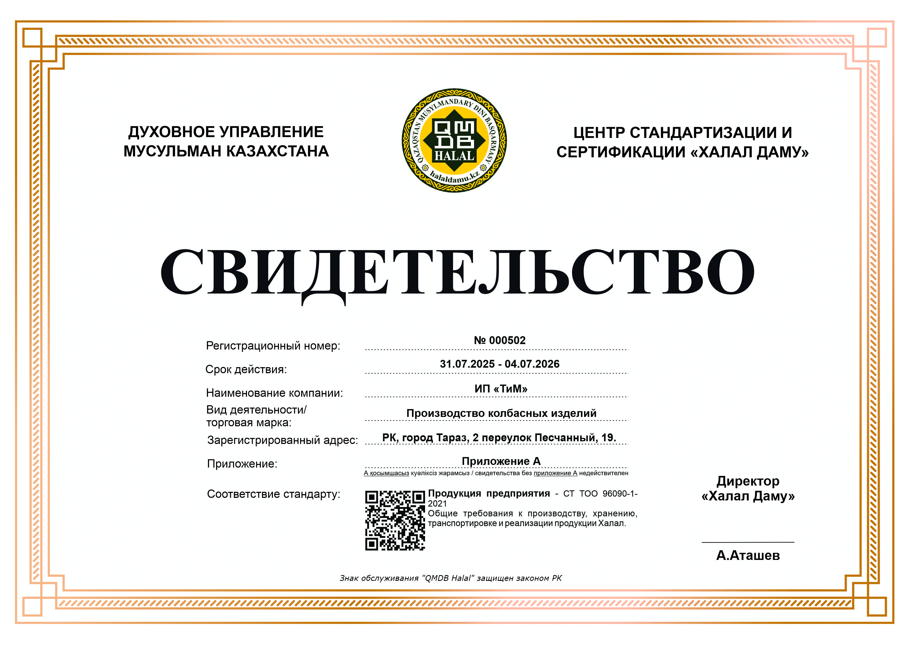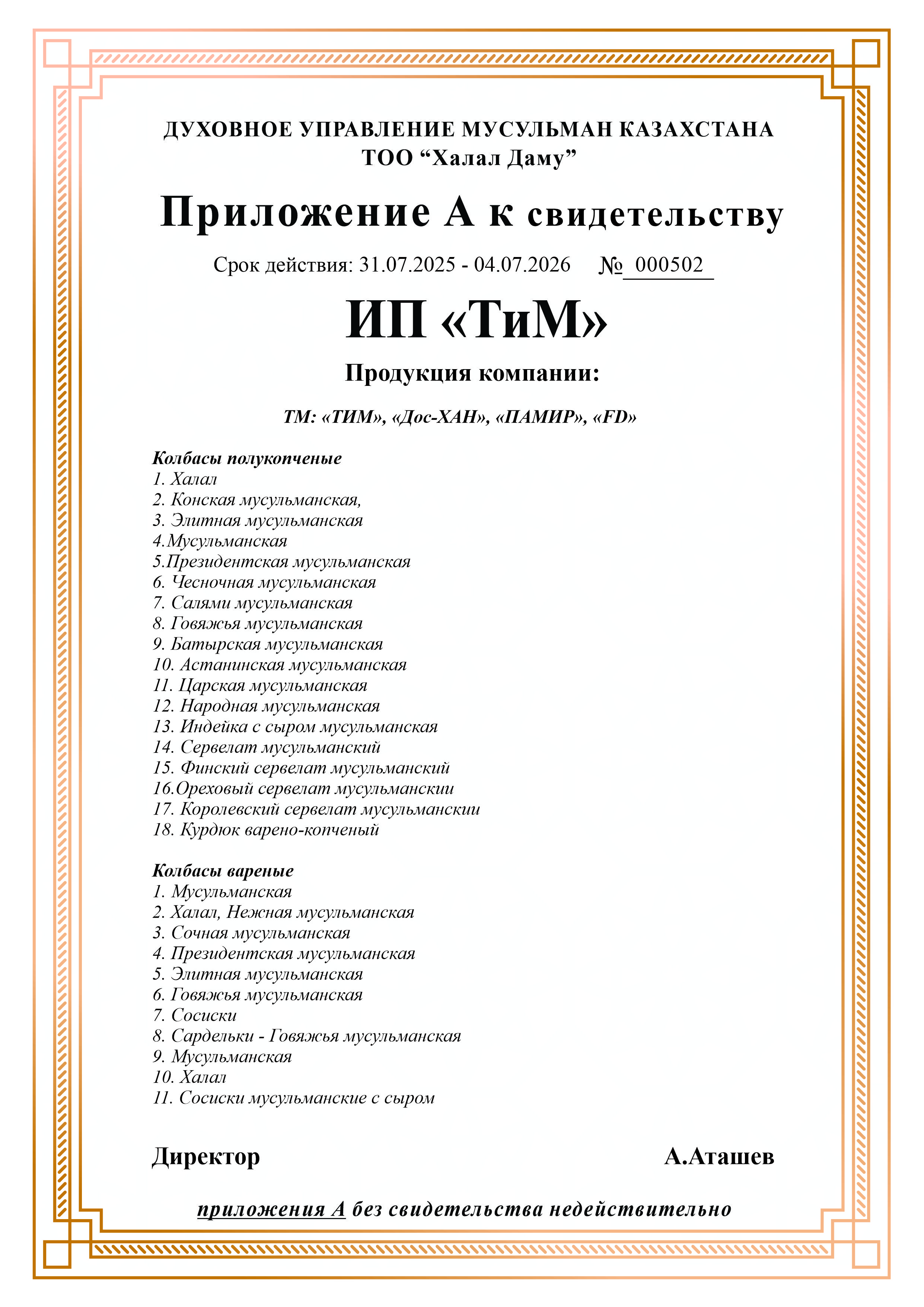 ТМ: «Дос-ХАН», «АЛИФ», «ЭЛИТА»