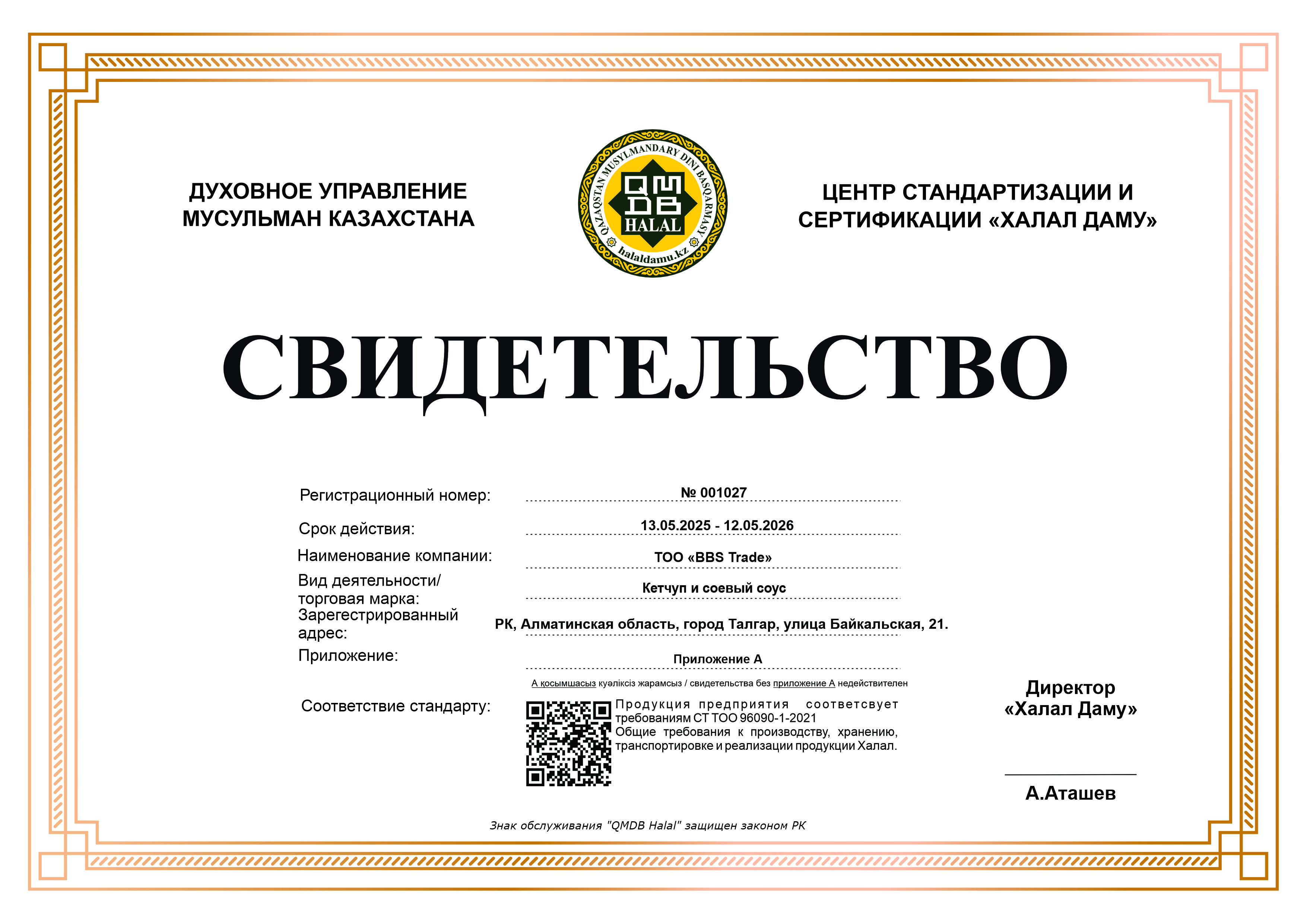 1. «Дәстүрлі» кетчубы с.б. «DEL TORO»