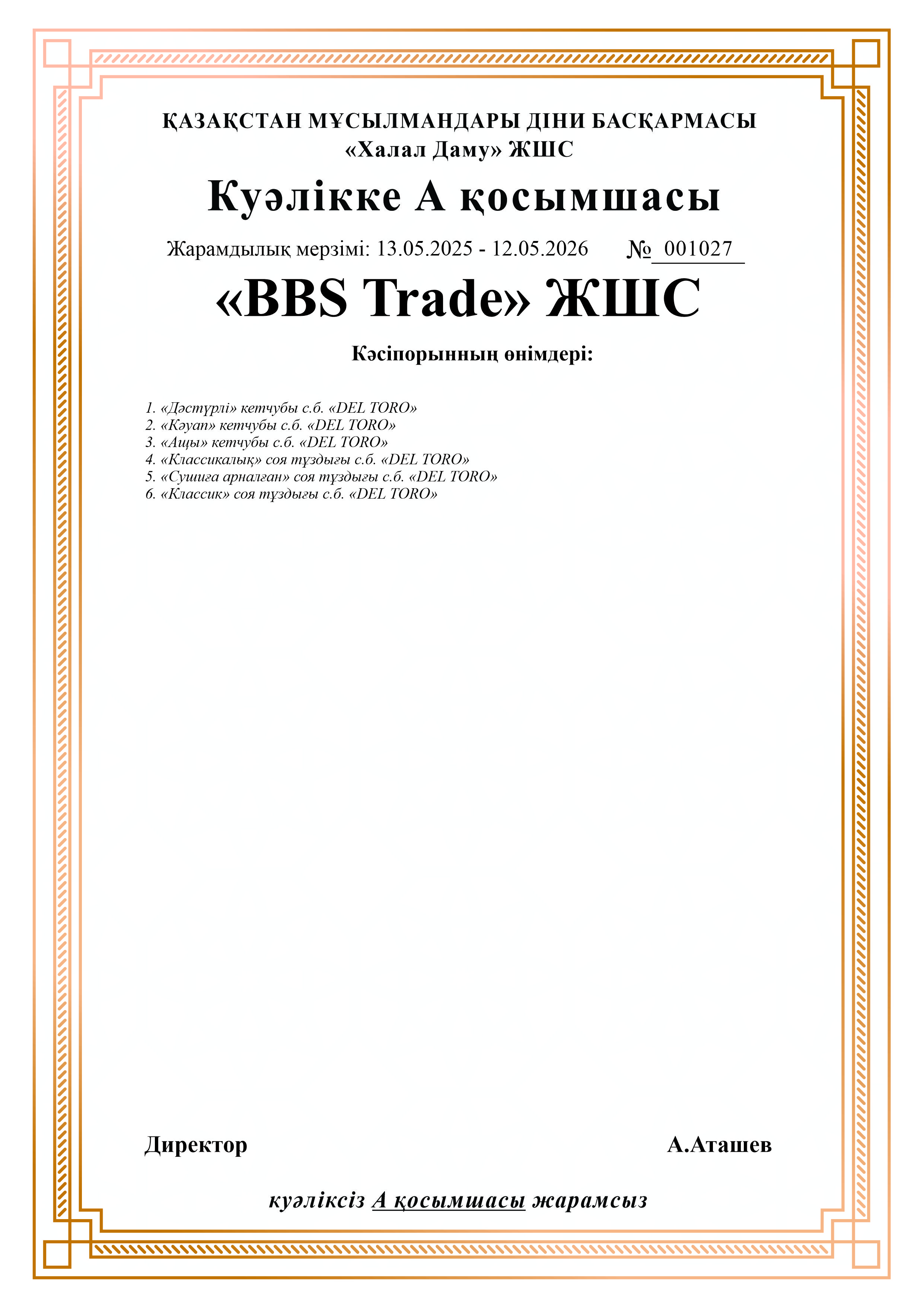 3. «Ащы» кетчубы с.б. «DEL TORO»