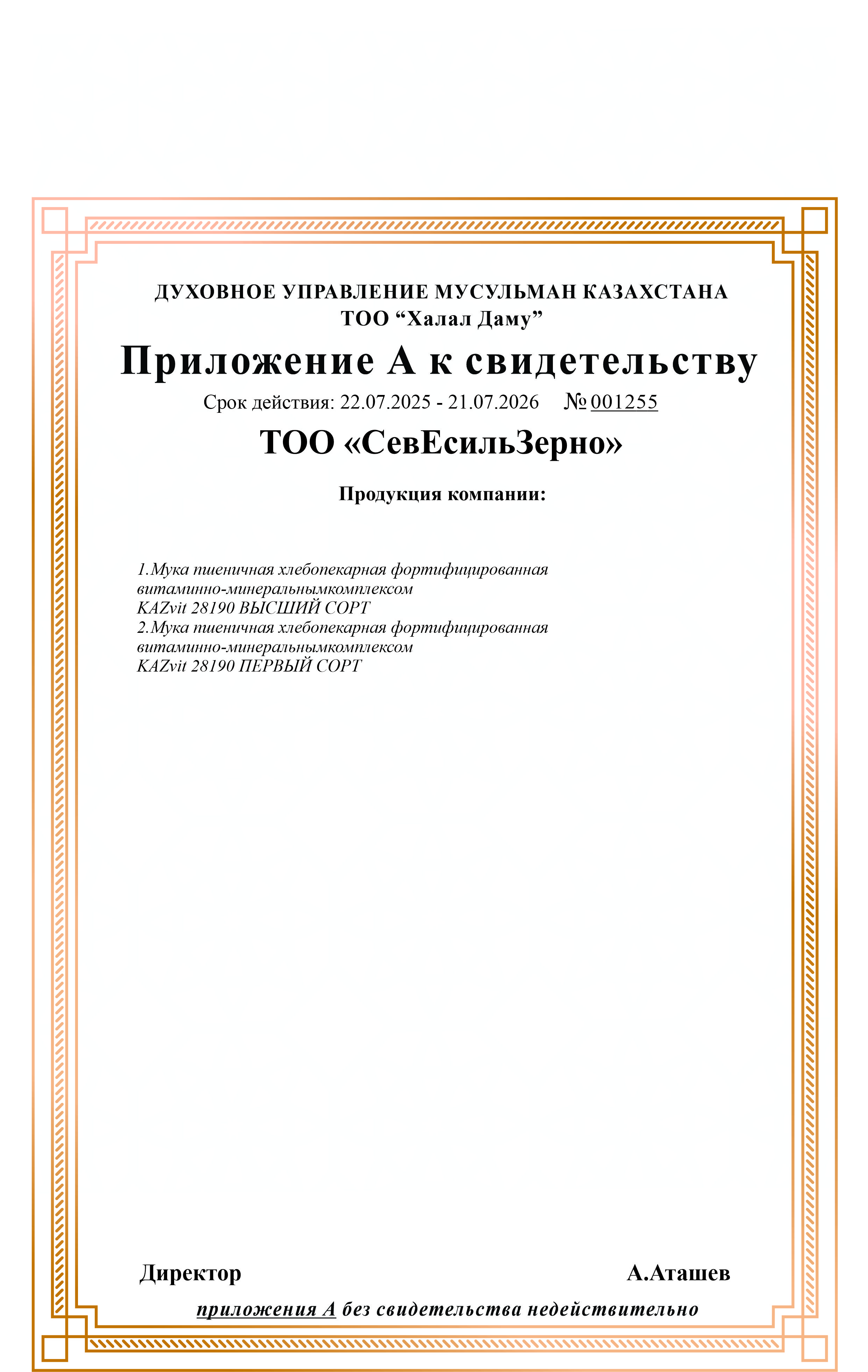1. Мука пшеничная хлебопекарная фортифицированная витаминно-минеральнымкомплексом KAZvit 28190 ВЫСШИЙ СОРТ