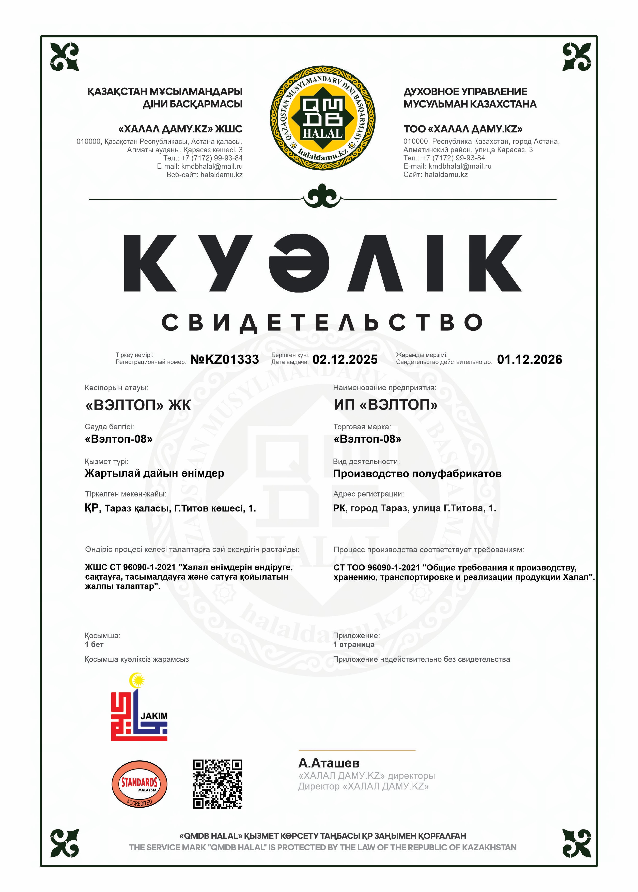 01.12.2026 ге дейін сертификатталған