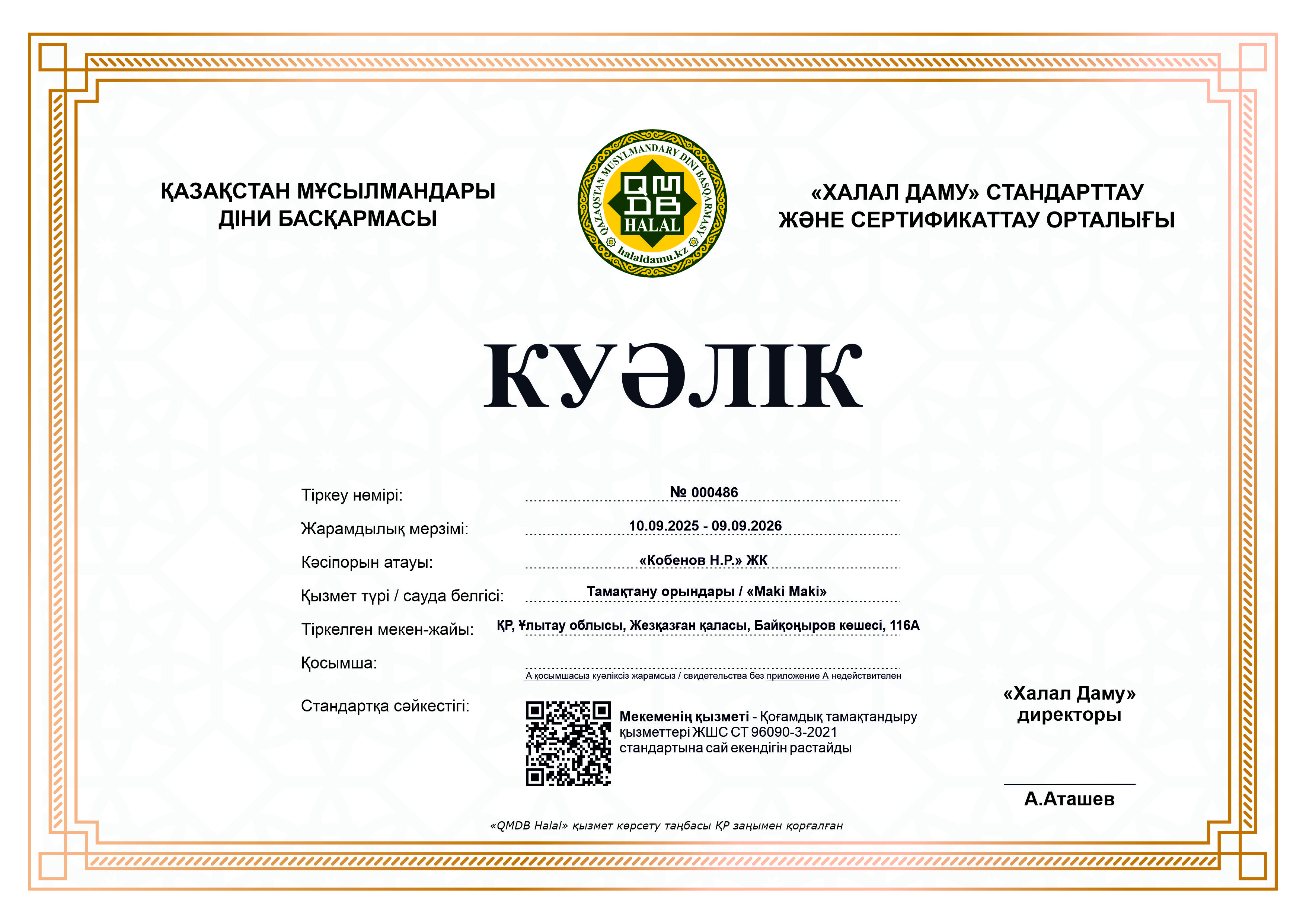 09.09.2026 ге дейін сертификатталған