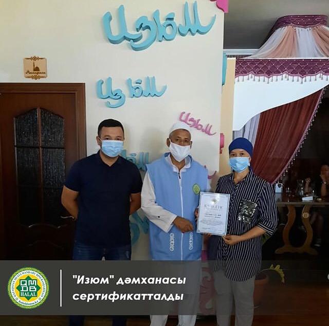 «Изюм» дәмханасы "Тағамдық қызметтер" және "Халал өнімдерді өндіруге, өңдеуге, дайындауға, сақтауға және сатуға қойылатын жалпы стандарт талаптары" бойынша сертификатталды.