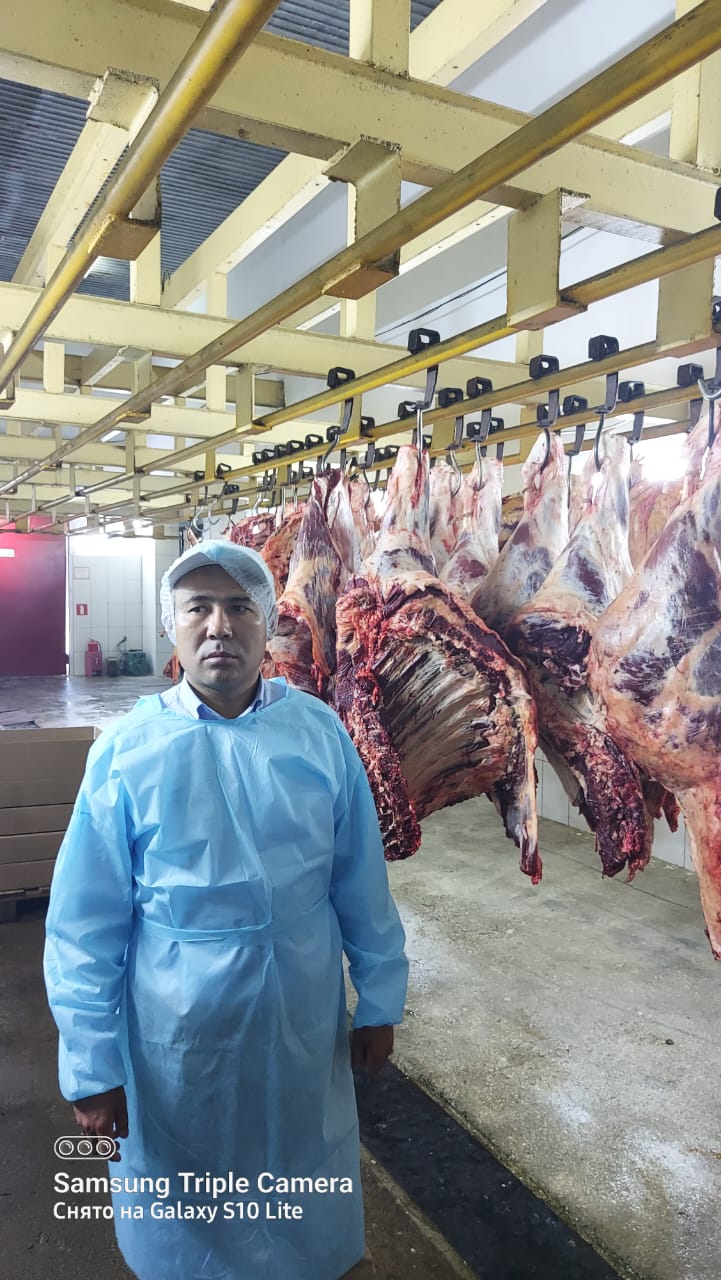 "ADS Group" сертификаттаудан өтуге өтініш білдірген қасапхана. Малдың семіздігіне ғана емес, адал жолмен бауыздалуына да ерекше көңіл бөлген жөн. Сондықтан экспортқа ет шығаратын қасапханаларды ұқыптылықпен мұқият тексерген жөн. Бүгінгі тексеріс барысында "ADS Group" қасапханасына мал бауыздау және ет өнімдерін өңдеу, өндіру, сақтау және тасымалдау обьектілерін күтіп ұстауға және пайдалануға қойылатын стандарт талаптары бойынша түсіндіру шаралары жүргізілді", – деген Айбек Асқарбекұлы сертификаттау шаралары әлі де аяқталмағагдығын жеткізді.