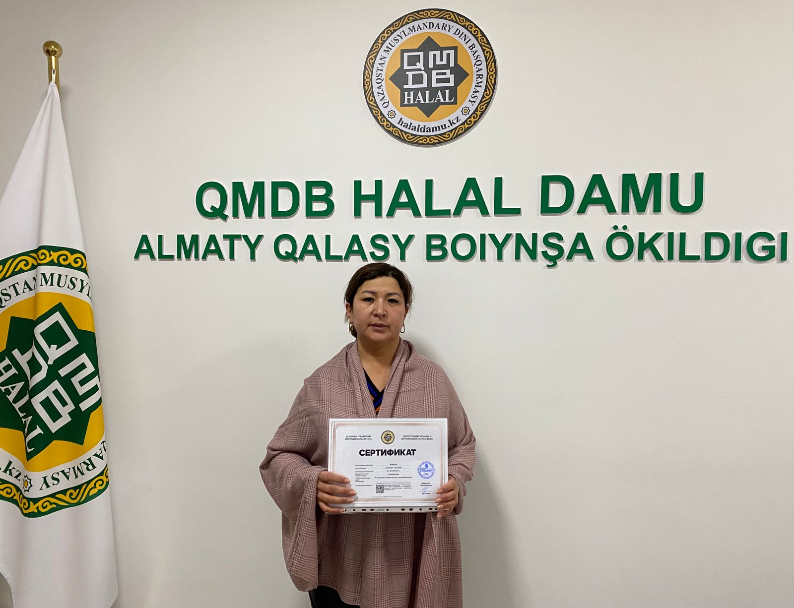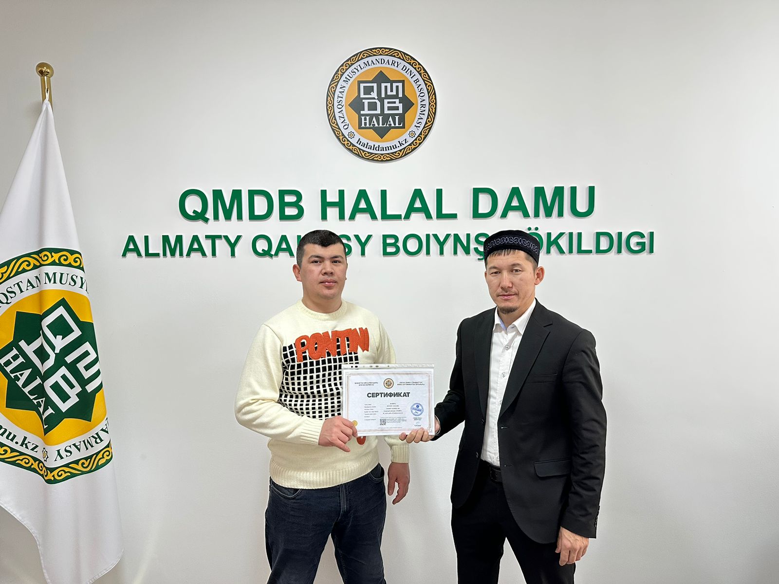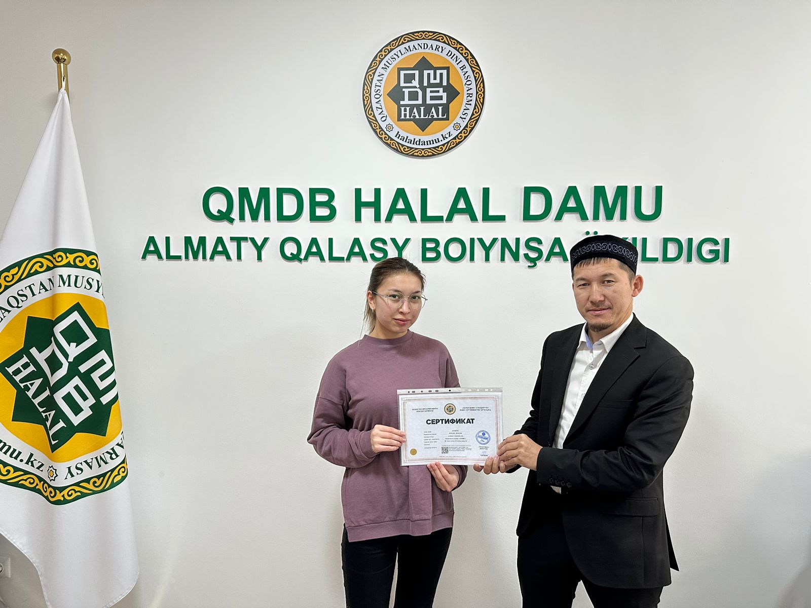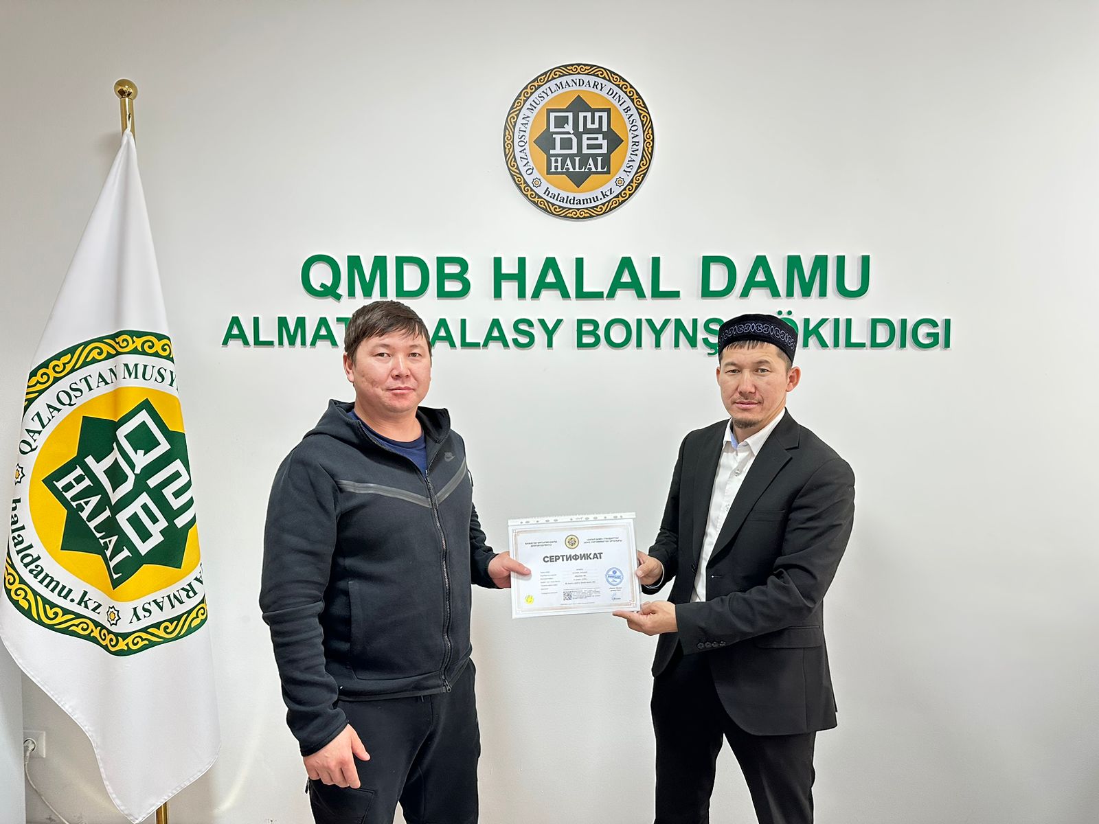 Алматы қаласындағы «Chunky» және «Трапеза» кондитерлік өнімдері, «ETAL» ет дүкені мен «Ecoproduct» жартылай фабрикаттары «QMDB Halal» стандарты талаптарына сай сертификатталды. Сертификатты «Халал Дамудың» Алматы қаласы бойынша жауапты өкілі Ерлан Құлмырзаұлы табыстады.