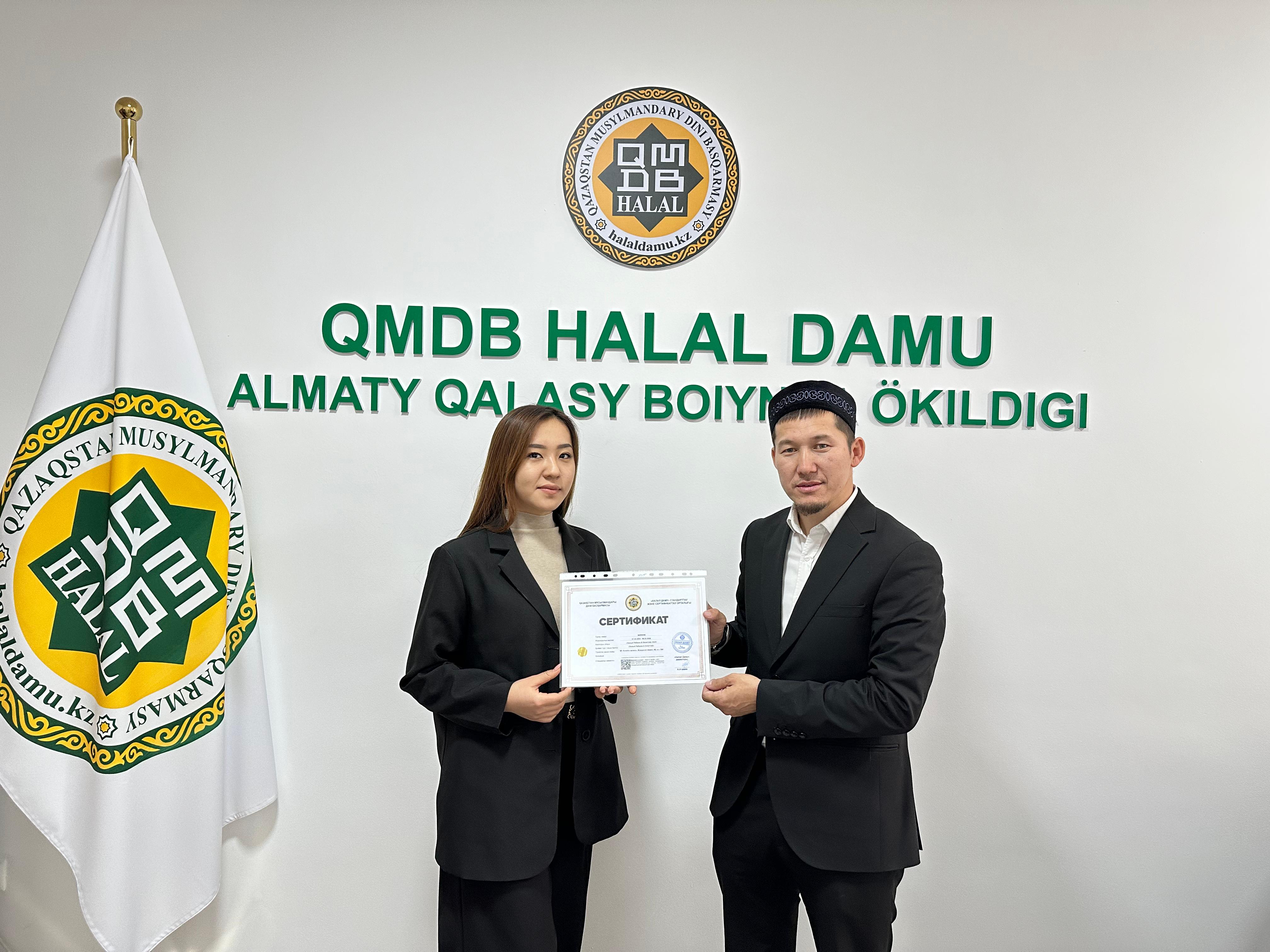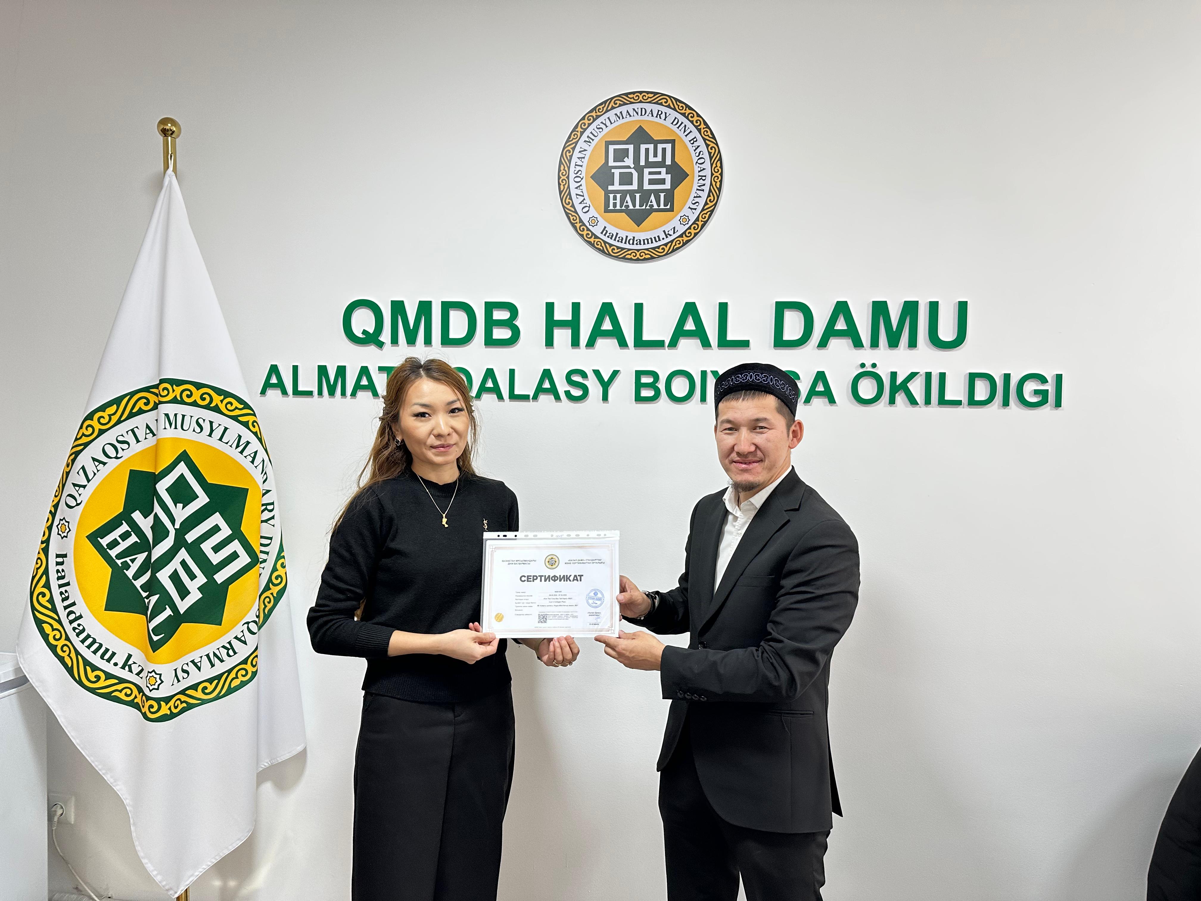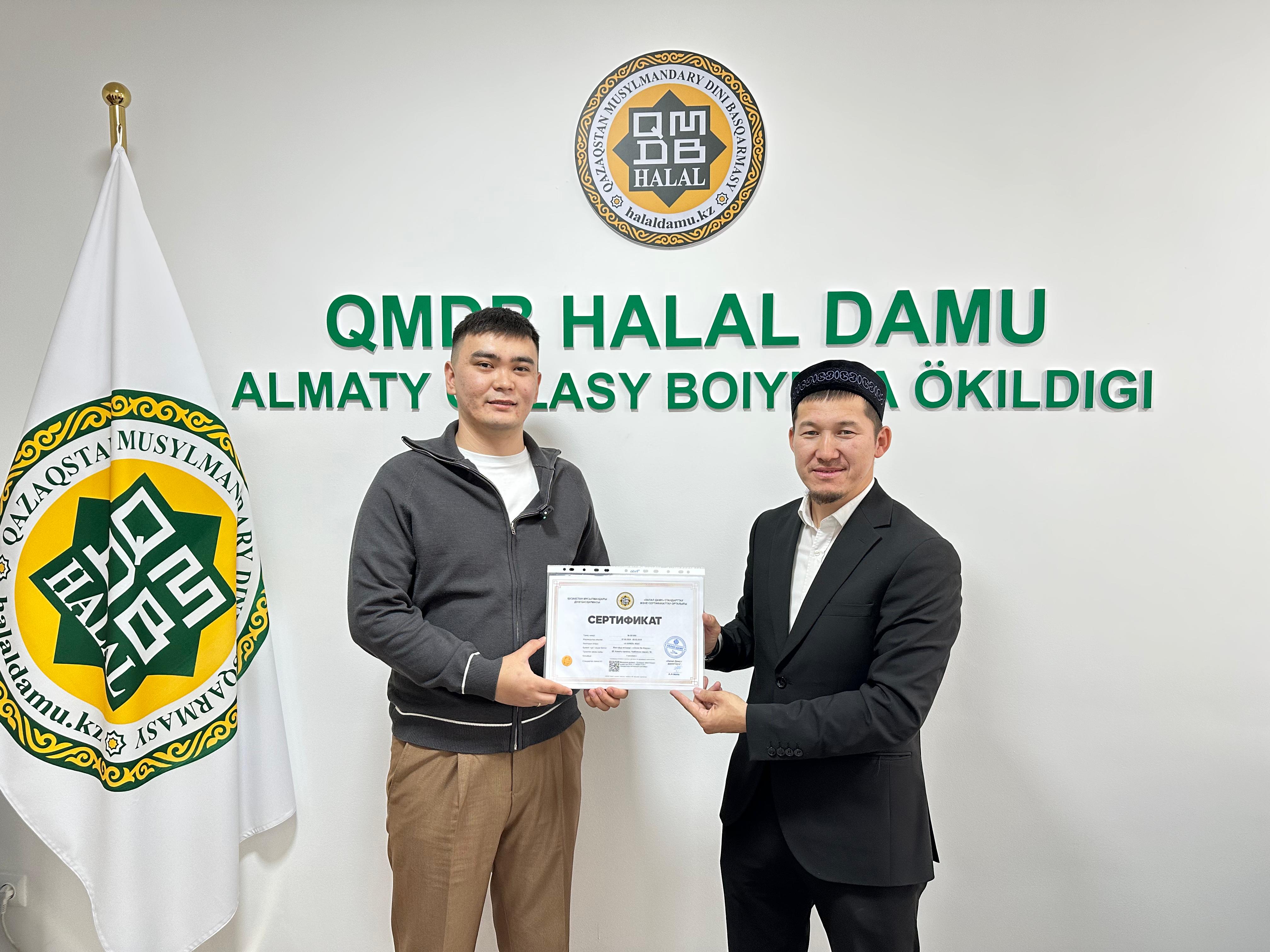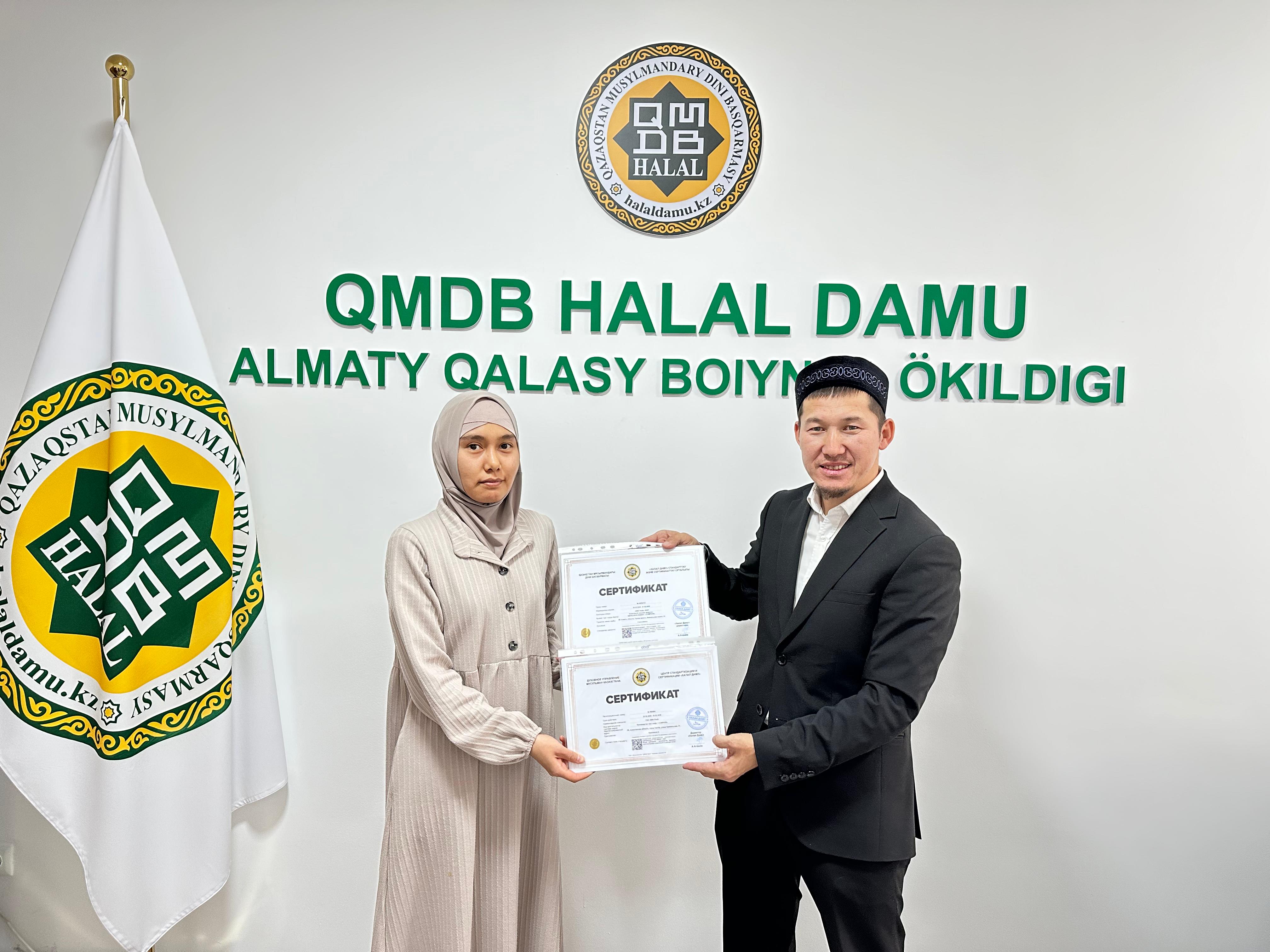 Алматы қаласындағы «Doner Na Abaya» дәмханасы, «Lyn`s Collagen Plus» профилактикалық өнімдері, «Compass» тағамдық қоспалары мен шәй өнімдері, «Умный Ребенок & Smart kid» балалар тағамы халал стандартына сай сертификатталды. Кәсіпкерлерге жергілікті өкіліміз Ерлан Тайлақов «QMDB Halal» сертификатын табыстады.