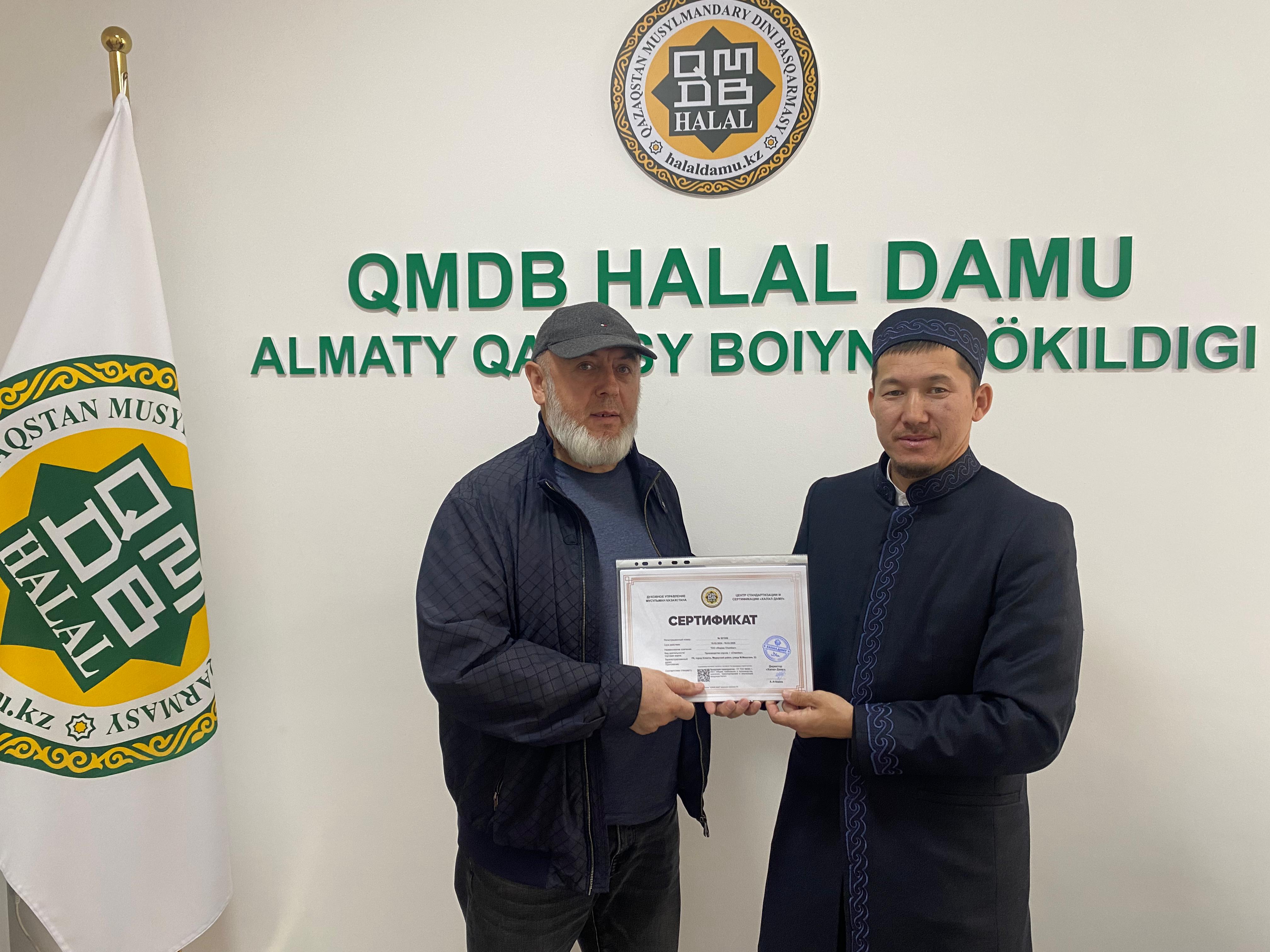 Алматы қаласындағы «Заказ плова» тамақ жеткізу қызметі, «Chambar» соус өндірісі, «Alba Foods» шұжық өнімдері, «Altyn Dam» жартылай фабрикаттары «QMDB Halal» стандарты талаптарына сай сертификатталды. Сертификатты жергілікті өкіл Ерлан Құлмырзаұлы табыстады.
