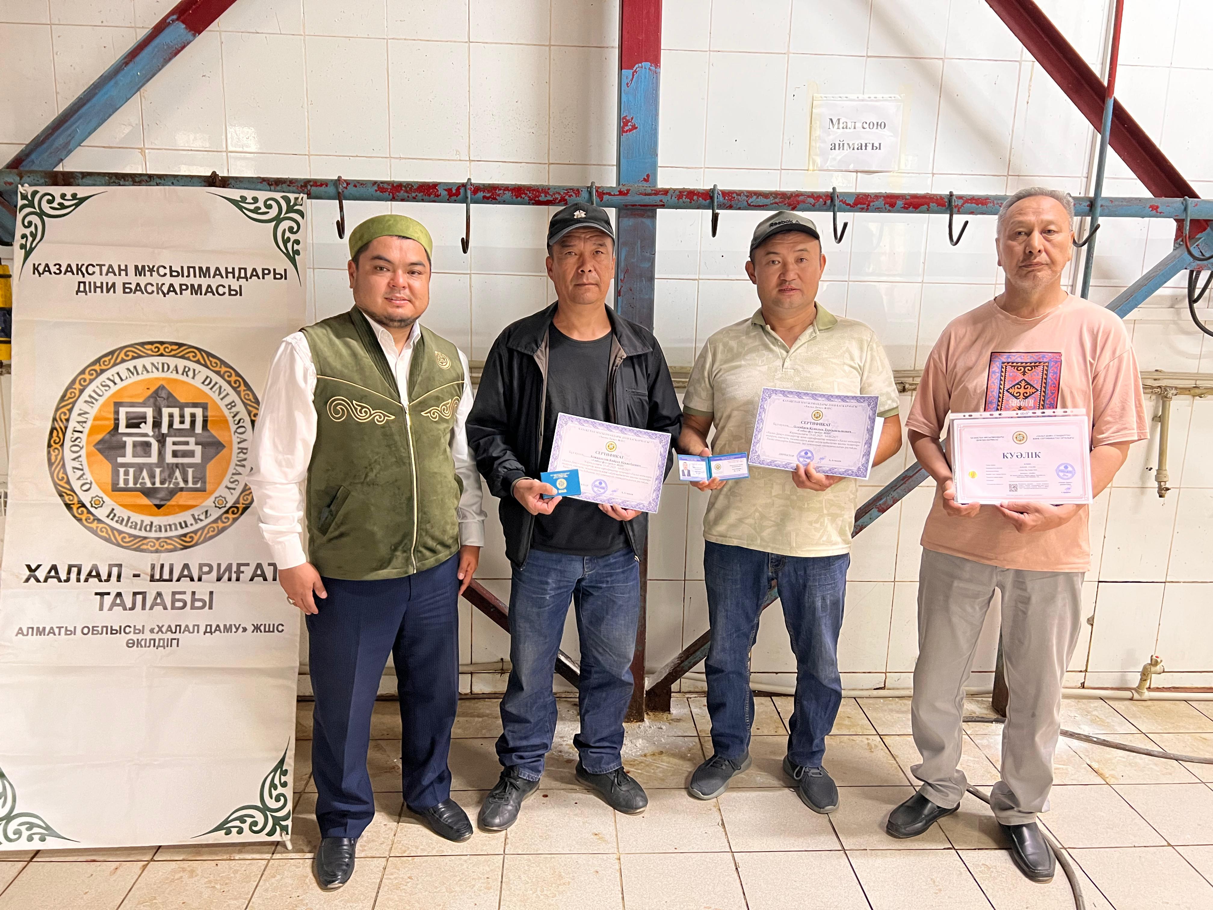 Қарасай ауданының бас имамы Дәуренбек Жандосұлы мен «Халал Дамудың» Алматы облысы бойынша жауапты маманы Жұмабеков Жанабіл Құрбан айт қарсаңында Қарасай ауданында орналасқан бірқатар құрбан шалу орындарына арнайы барып, дайындық барысын бақылап, қасапшылармен жүздесті.