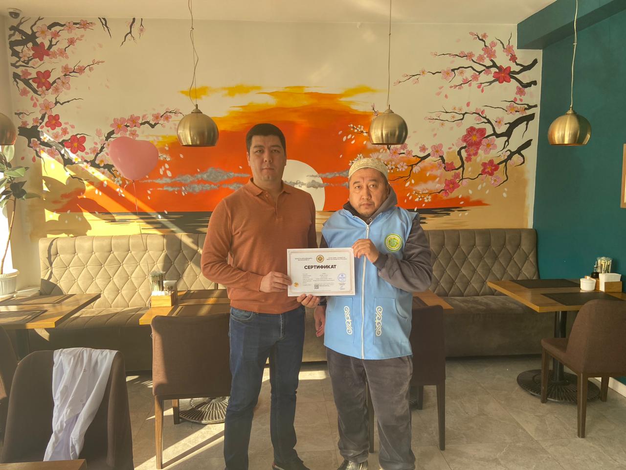 Алматы облысы, Қаскелең қаласында орналасқан «Japonica» тамақтану орнын жергілікті өкіл Жұмабеков Жанәбіл тексерді және жаңартылған сертификатын табыстады.