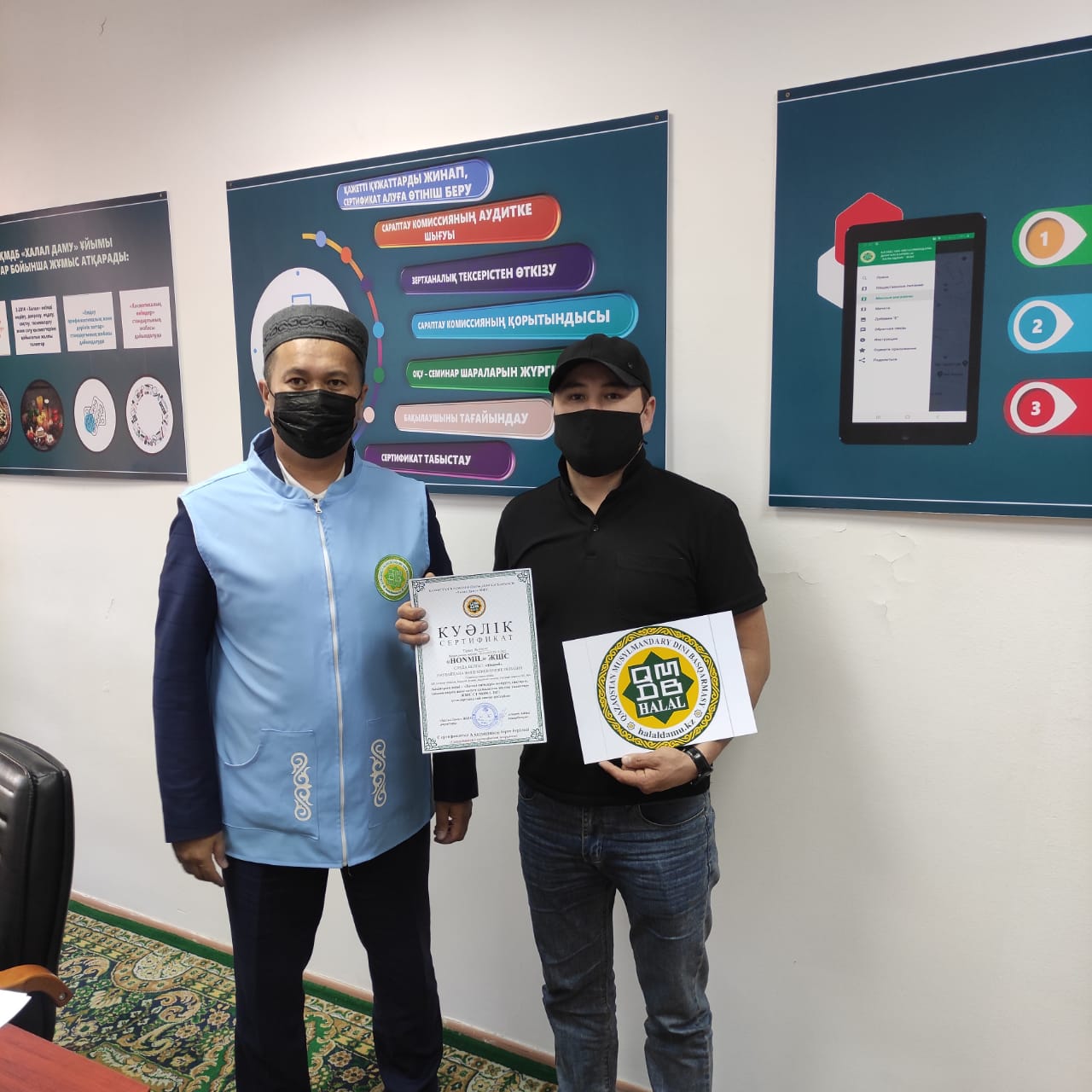 Алматы қаласында орналасқан заманауи кәсіпорындардың бірі – «Honmill» наубайханасы «QMDB Halal» сертификатына ие болды. Наубайхананың 34 түрлі өнімі «Халал өнімдерді өндіруге, өңдеуге, дайындауға, сақтауға, тасымалдауға және сатуға қойылатын жалпы талаптар» стандартына сай сертификатталды. Сертификатты «Халал Дамудың» Алматы қаласы бойынша жауапты өкілі Маратхан Чадаев табыстады.