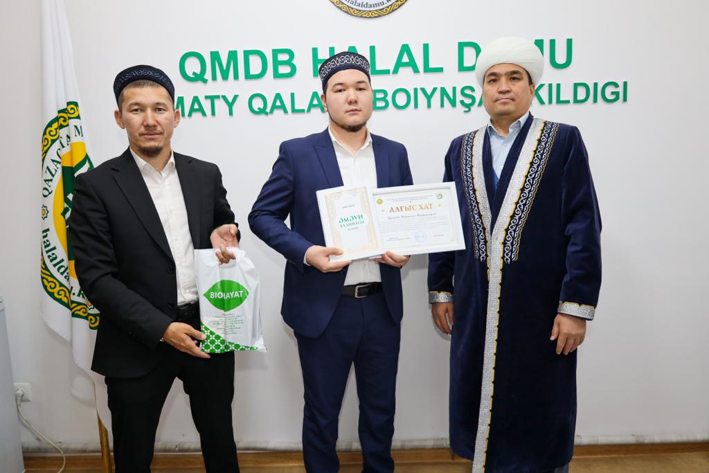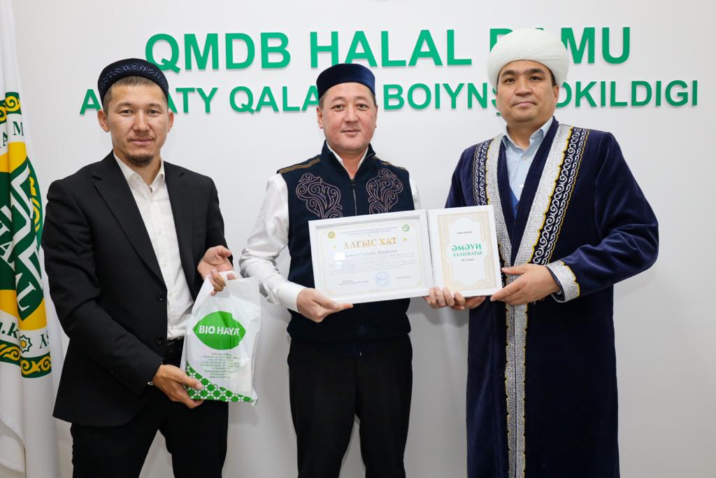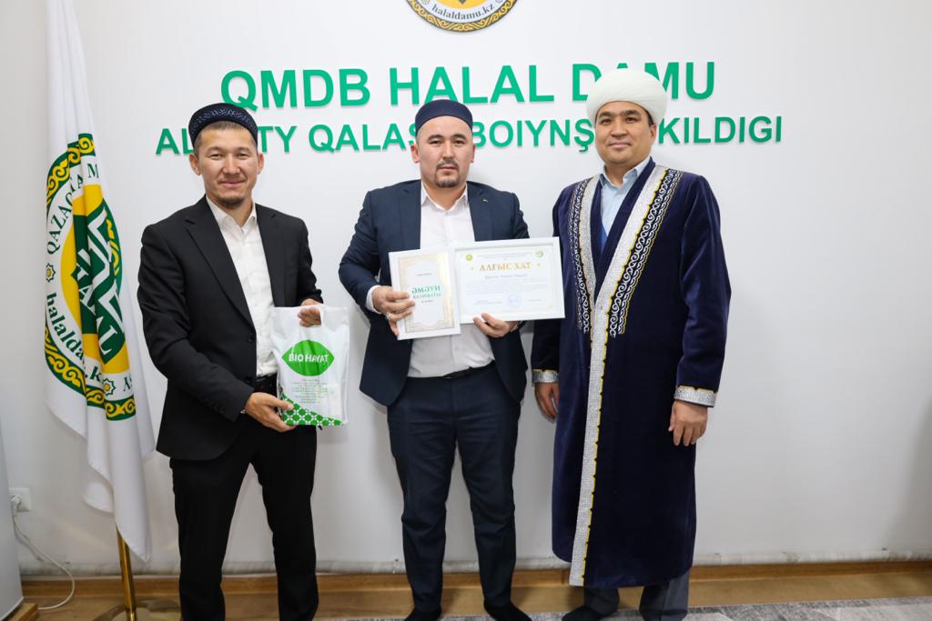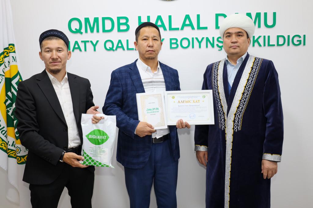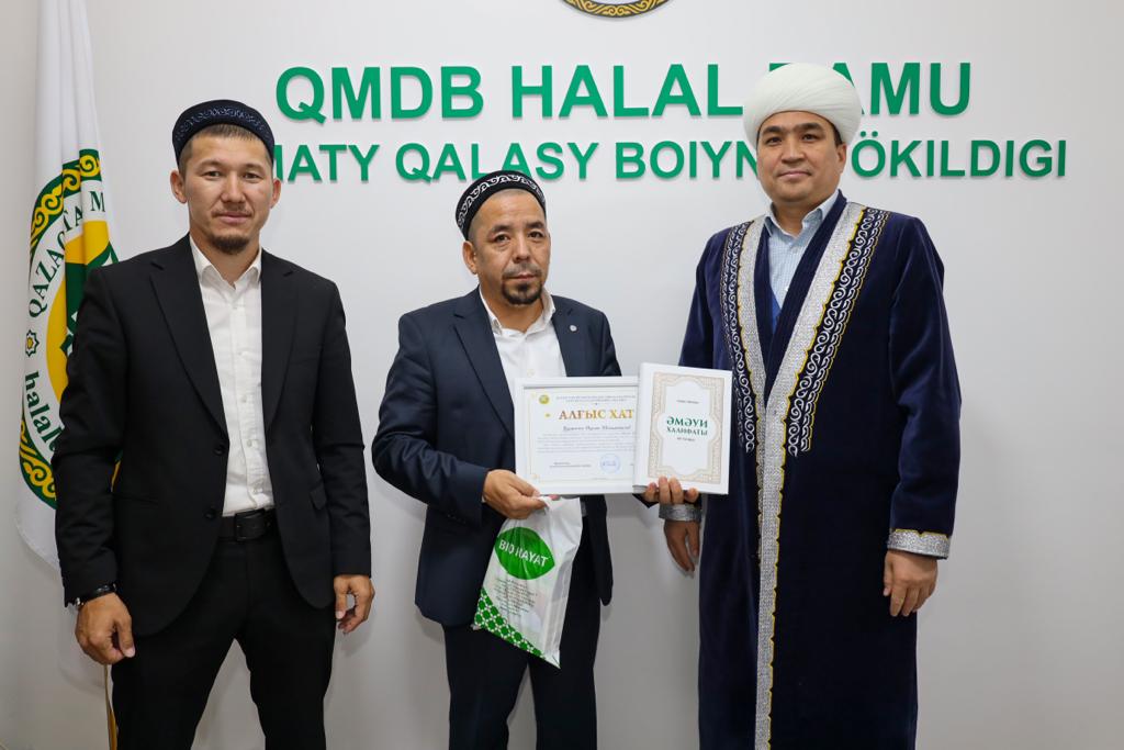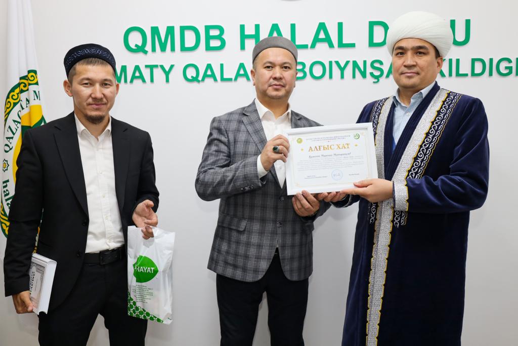 Алматы қаласының бас имамы Төлеби Оспан «Халал Дамудың» жауапты өкілі Ерлан Тайлақов пен технолог Әселхан Сәбитқызын және халал стандарттау және сертификаттау жұмыстарына жауапты жергілікті 8 аудан өкілдерін арнайы алғыс хатпен марапаттады.