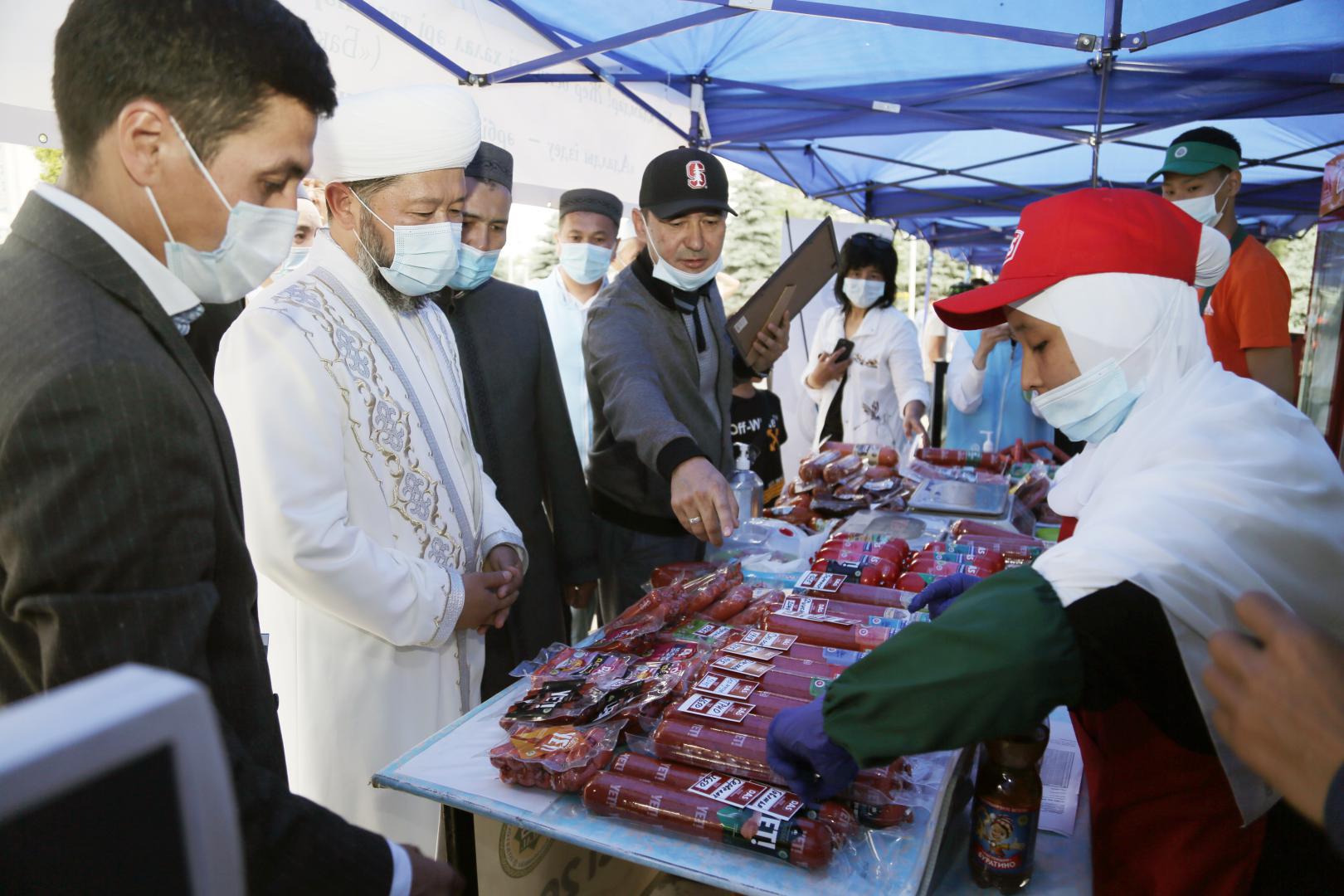 Ашылу салтанатынан кейін Бас мүфти халал өнімдер жәрмеңкесін аралап, "Халал Дамудан" сертификаттаудан өткен кәсіпорын өнімдерімен танысты.