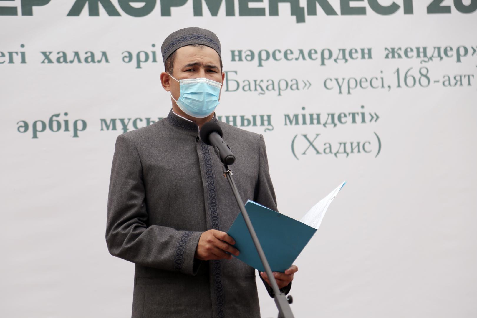 Халал өнімдерді халыққа насихаттау мақсатында өткізілген жәрмеңкені салтанатты түрде ашқан ҚМДБ төрағасы, Бас мүфти Наурызбай қажы Тағанұлы: "Алла Тағала барша құлдарына тура жолды нұсқаушы етіп Құран Кәрім мен Пайғамбарымызды (с.а.у) жіберді. Туралықтың жаршысы болатын құлшылықтың өзегін халал дүние құрайды. Діни басқарманың негізгі бағыттарның бірі – халал стандарттау және сертификаттау саласы. Алла Тағаланың ұлы сөздері қасиетті Құран Кәрімде адамзат баласына көл-көсір нығметтер беріп, жер бетіндегі халал мен харам нәрселердің ара жігін айырып көрсеткен. Алла пендесі үшін нені халал десе, ол сырда қайыр мен хикмет бар, ал нені харам десе, онда адам ғұмыры үшін ұшан-теңіз зиянның бар екендігі күмәнсіз. Осы турасында "Бақара" сүресінің 168-аятында былай деп түсіндіреді: "Уа, адамдар, жер бетіндегі нәрселердің халал әрі тазасынан жеңдер!", – делінген. Бүгінгі таңда, "QMDB halal" сертификатына ие болған, 600-ден астам кәсіпорын бар. Еліміздегі пандемиялық жағдайда байланысты оңтүстік өңірдегі 23 кәсіпорын ғана бүгінгі жәрмеңкеде өз өнімдерін ұсынуда. Ендеше, сіздердің игіліктеріңіз үшін ұйымдастырылған халал өнімдер жәрмеңкесіне қош келдіңіздер! Алла әрбір қадамдарыңызға сауаптардан жазсын!", –деді.