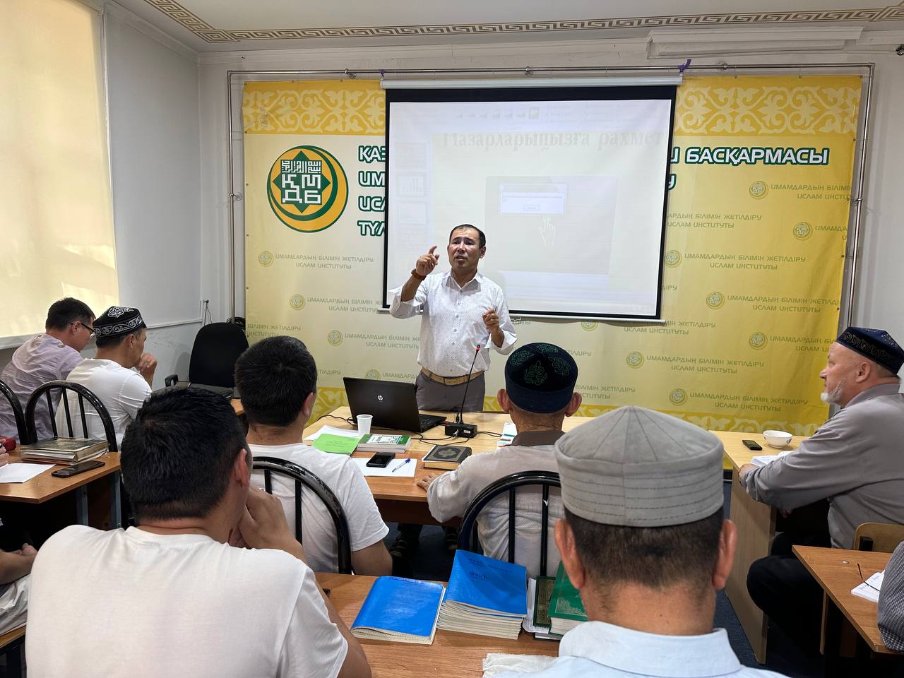 «Халал Даму» директоры Айбек Асқарбекұлы Алматы өңірдегі «Қазақстан мұсылмандары діни басқармасы» республикалық ислами діни бірлестігінің «Қазақстан Республикасы имамдарының білімін жетілдіру ислам институтында» халал туралы кезекті оқу-семинарын өткізді.