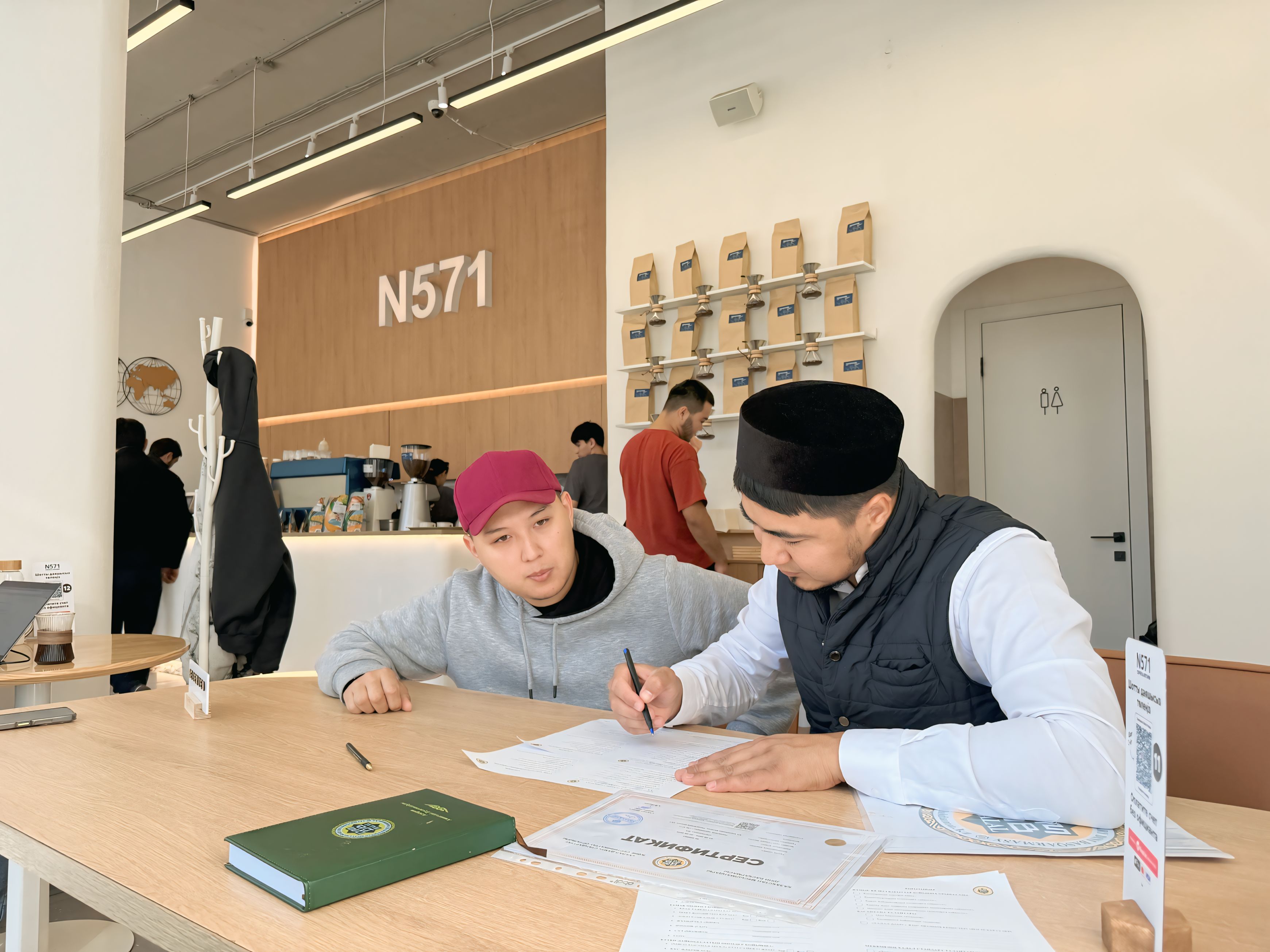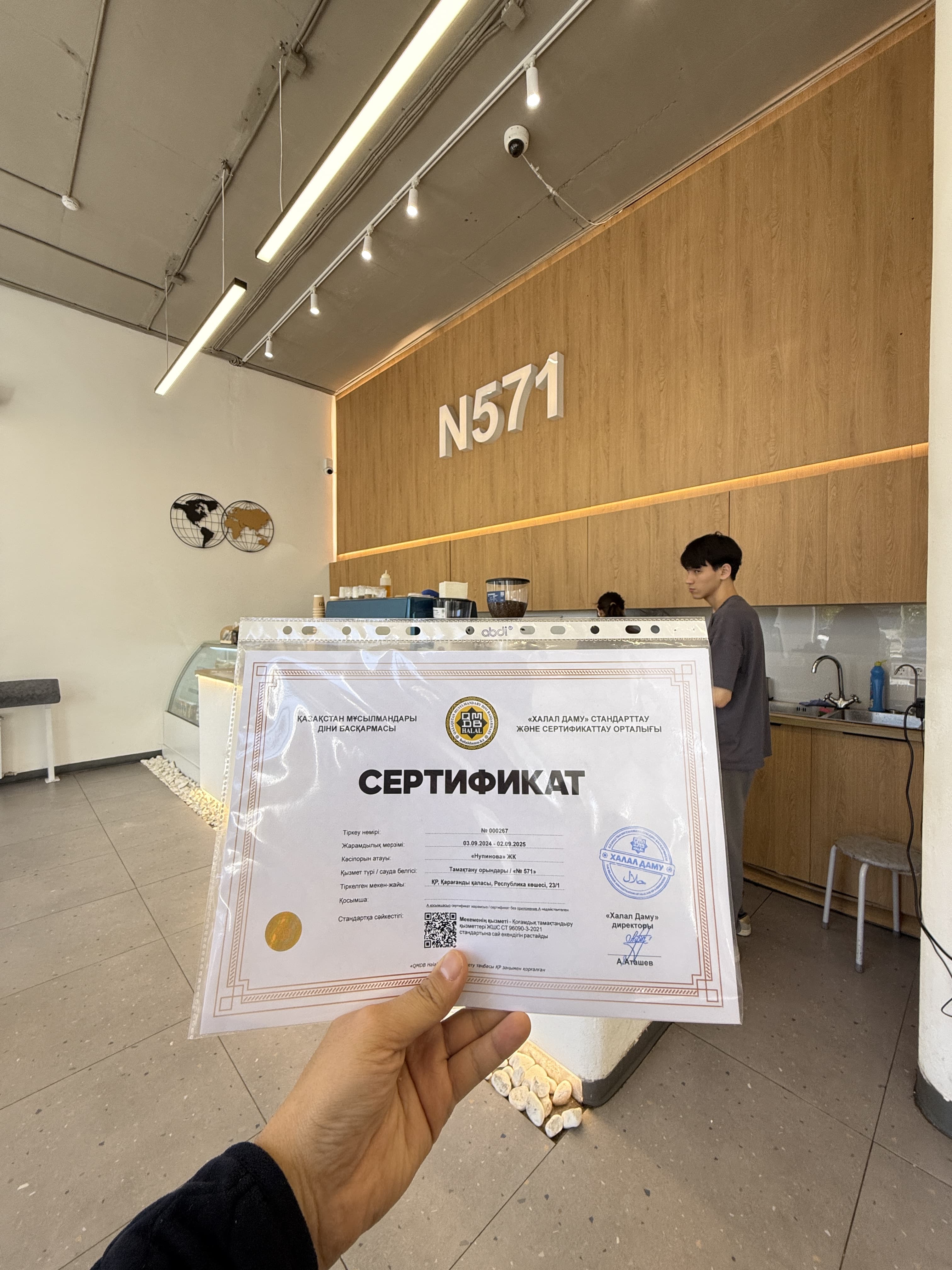 Қарағанды қаласындағы «№ 571 coffee and kitchen» дәмханасы «QMDB Halal» стандарты талаптарына сай сертификатталды. Сертификатты «Халал Дамудың» Қарағанды облысы бойынша жауапты өкілі Амангелді Асқаров табыстады.