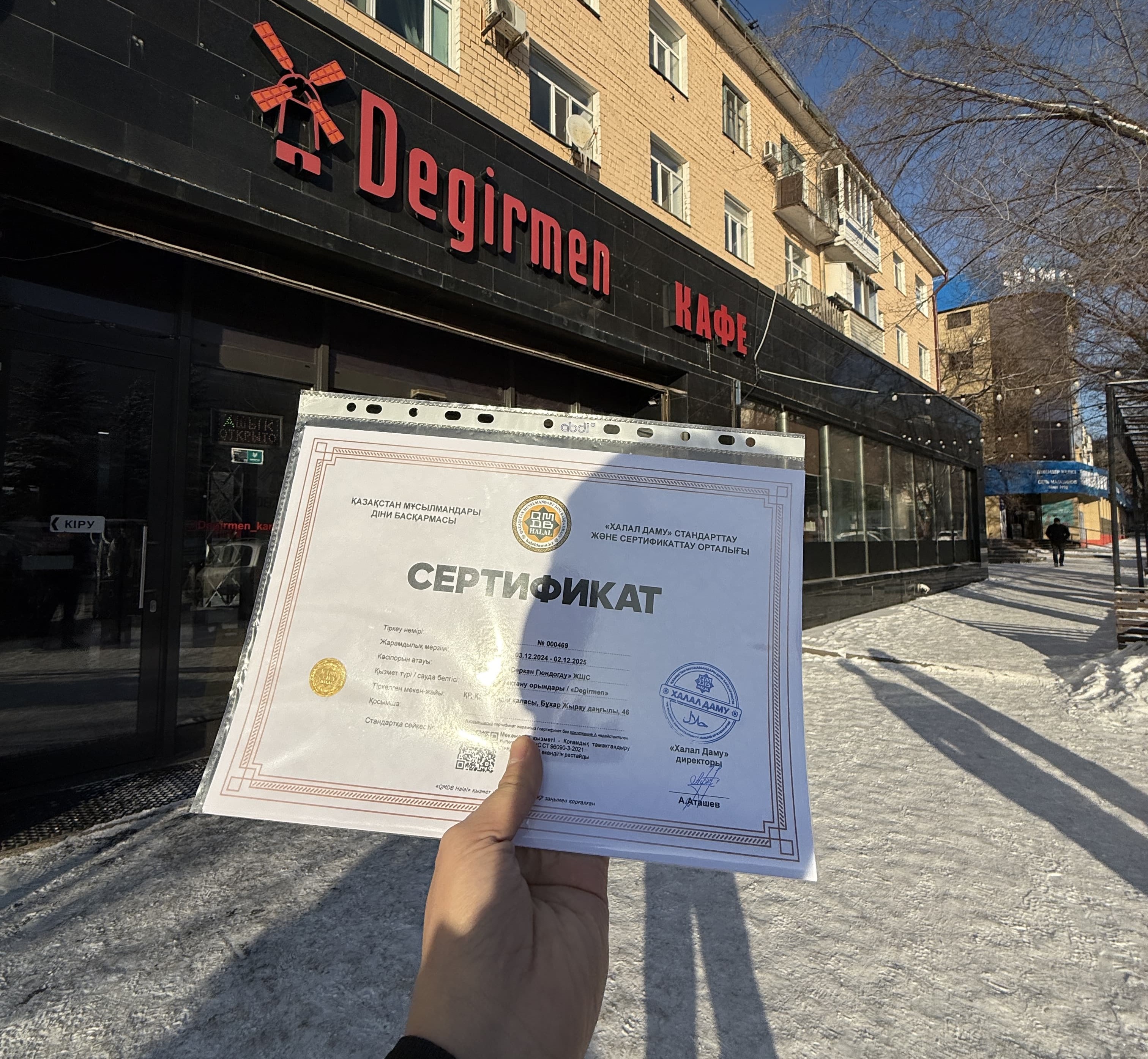 Қарағанды қаласындағы «Degirmen» дәмханасы халал стандарты талаптарына сай сертификатталып, кәсіпорын өкіліне «QMDB Halal» сертификаты табысталды.
