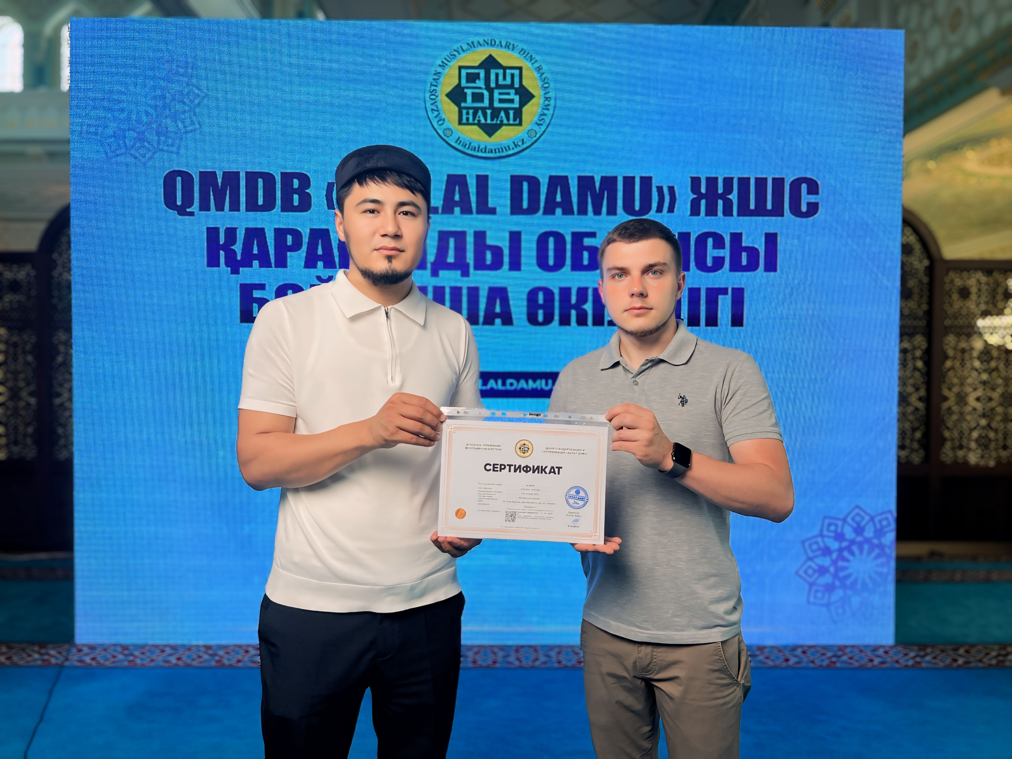 Қарағанды қаласындағы «Эталон» ұн өндірісі мен «Батыр» фаст-фуд өнімдері «QMDB Halal» стандартына сай сертификатталды. Сертификатты «Халал Дамудың» жергілікті өкілі Амангелді Асқаров табыстады.