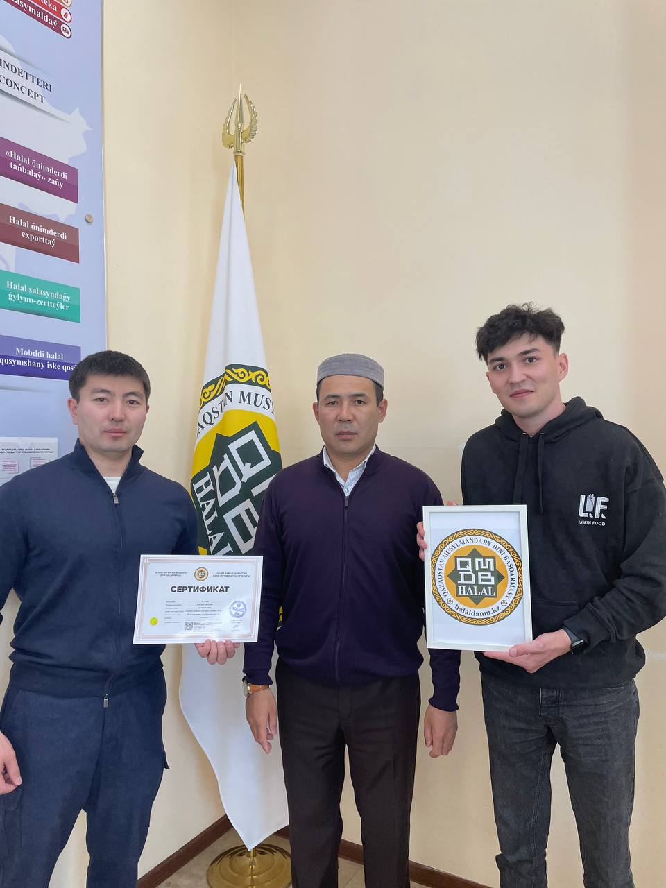 «Халал Даму» директоры Айбек Асқарбекұлы «Lavash Food» тамақтану орнына «QMDB Halal» сертификатын табыстады.